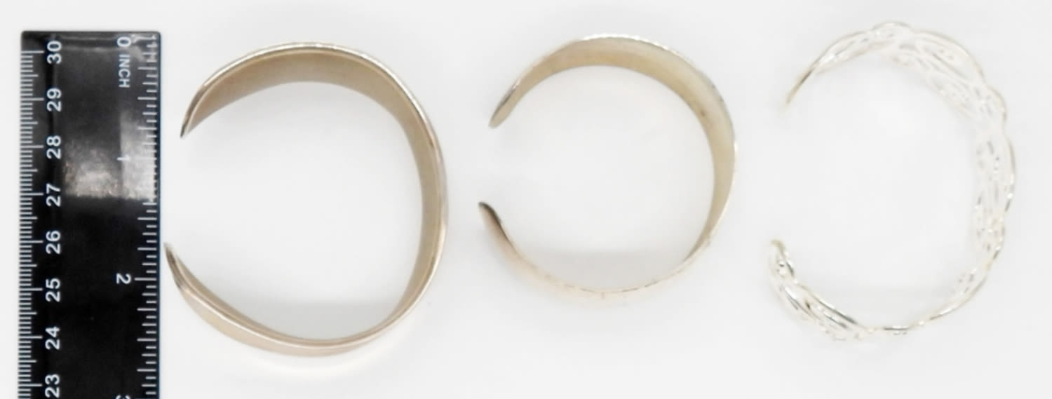 65.8 DWT; (3) STERLING SILVER CUFF STYLE BRACELETS; PLAIN AND SWIRL DESIGN; MARKED STERLING 925