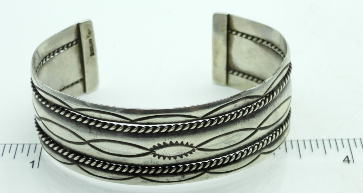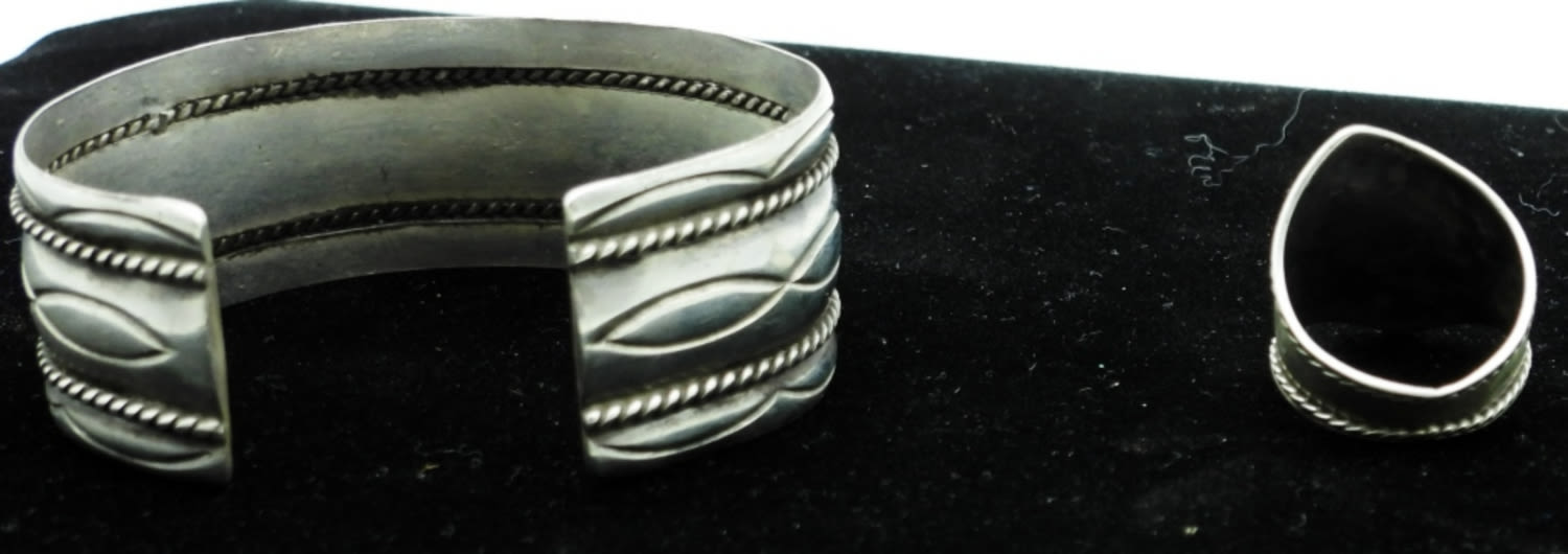 20DWT, CUFF IS 6IN AROUND WITH GAP, STERLING STAMPED ON THE INSIDE, RING SIZE 7 1/2 STAMPED 925