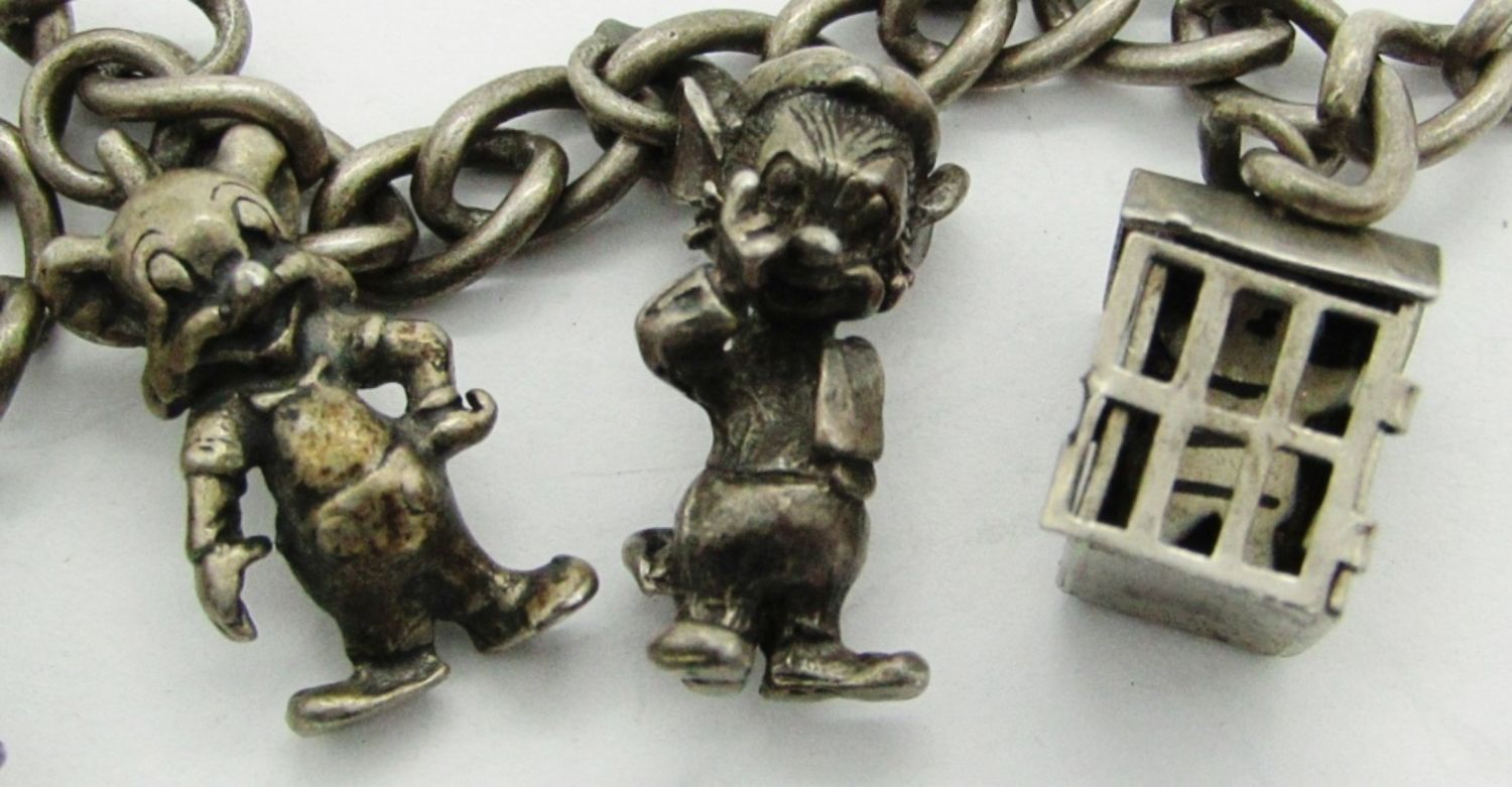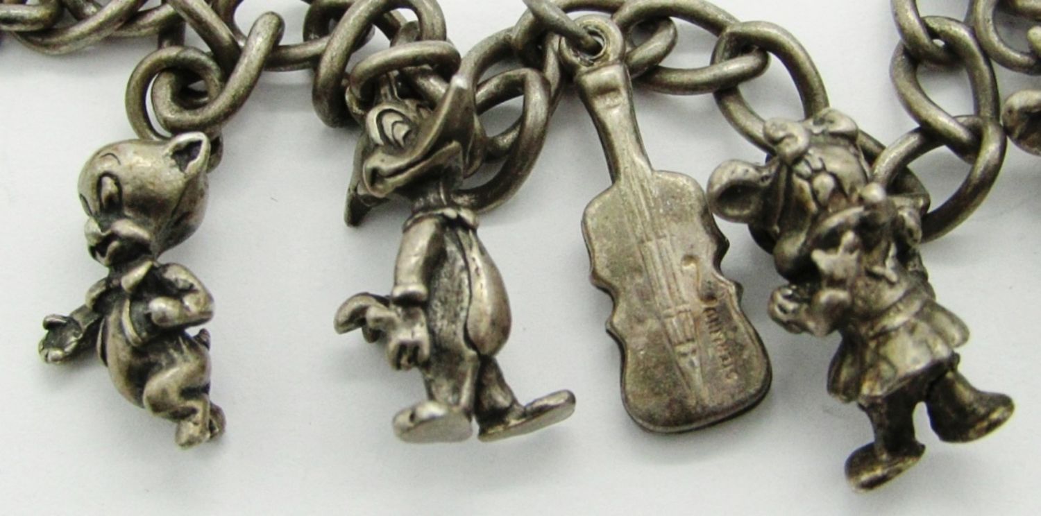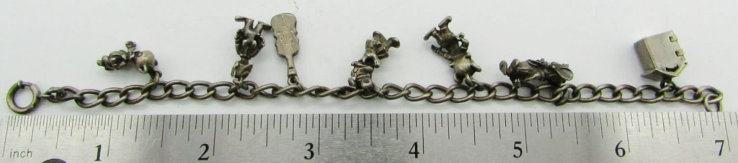 14.5 dwt. Woody Woodpecker and Friends Lantz Characters Charm Bracelet. 7″, Marked Sterling.