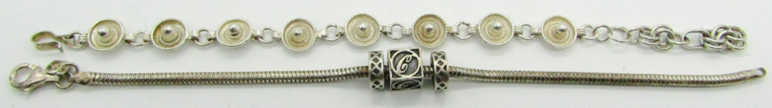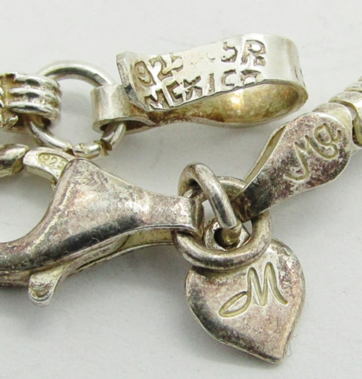 15.2 dwt. Marked “925 Mexico” & “925 Italy”. Mexico Sombrero Link Bracelet Sterling 925. 925 Italy MA 3 Charm Cord Bracelet.