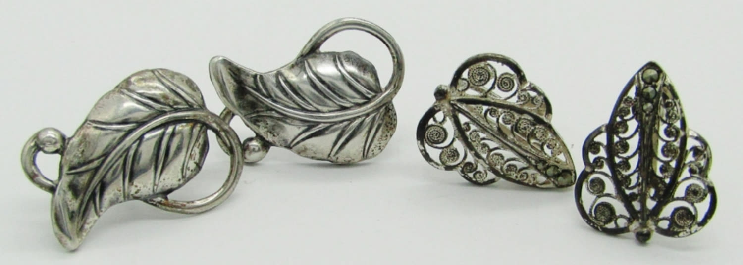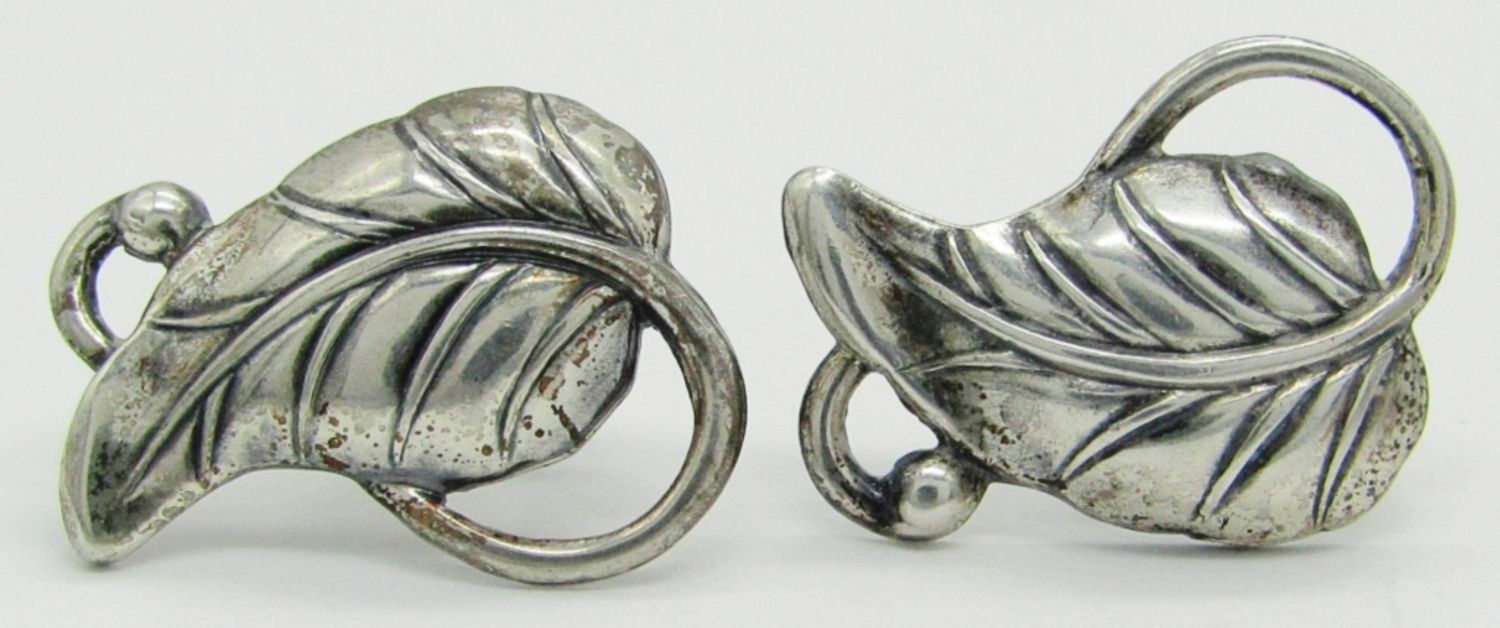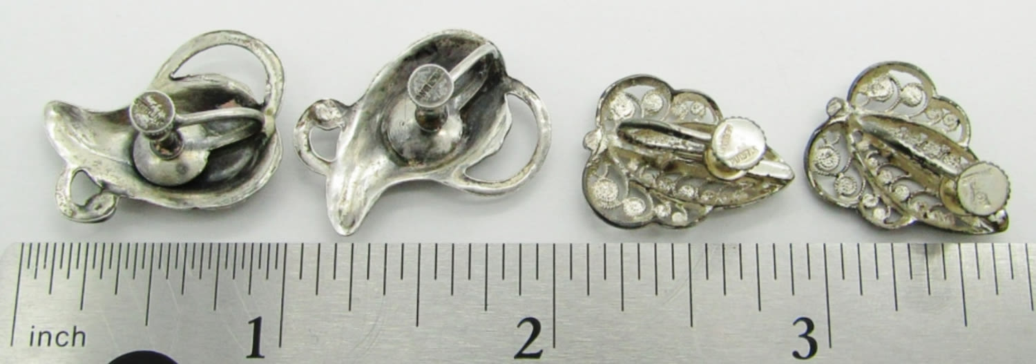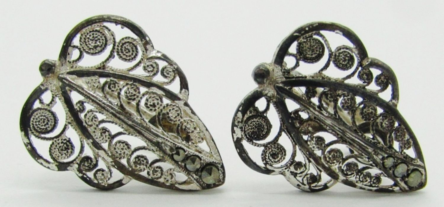 7 dwt. Filigree Leaf Screw-Back Earring Pair Marked Sterling Germany; Leaf Screw-Back Earring Pair Marked Sterling.