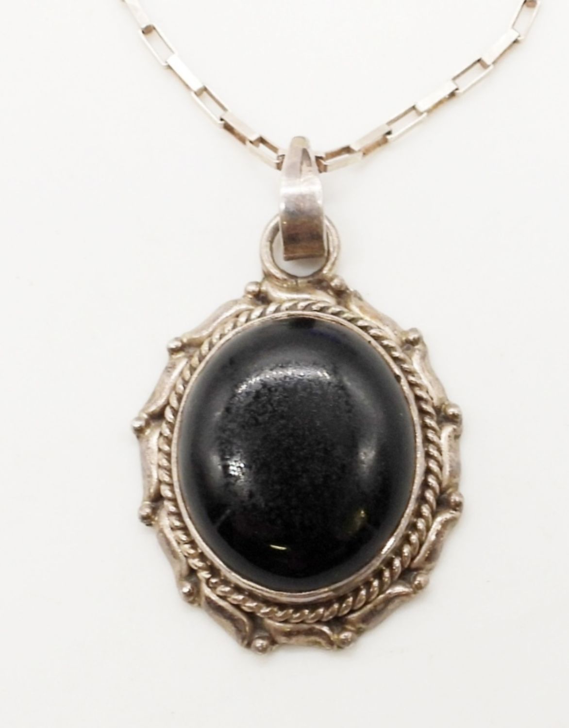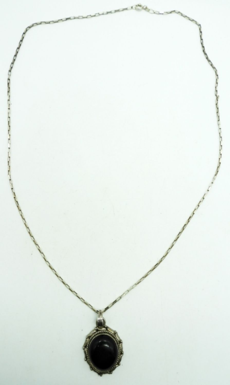 12DWT, 24IN LONG CHAIN WITH A SPRING CLASP STAMPED 925 ITALY, PENDANT IS A BLACK ONYX STAMPED 925 ON THE BACK, BLACK ONYX RING SIZE 5 1/2, STAMPED STERLING