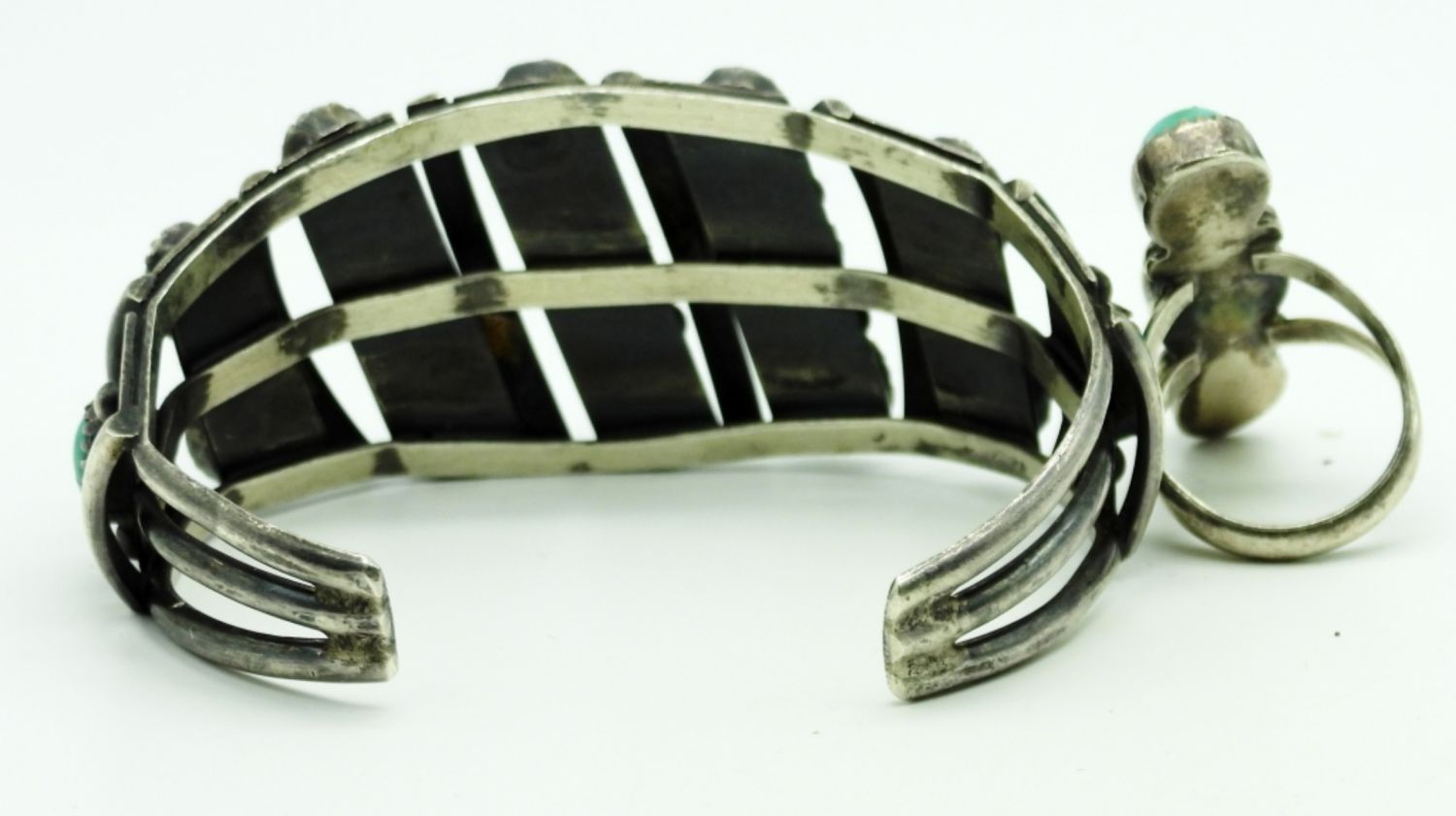 8DWT, STERLING, NOT STAMPED, CUFF IS 7IN AROUND WITH GAP, RING SIZE 5 1/2