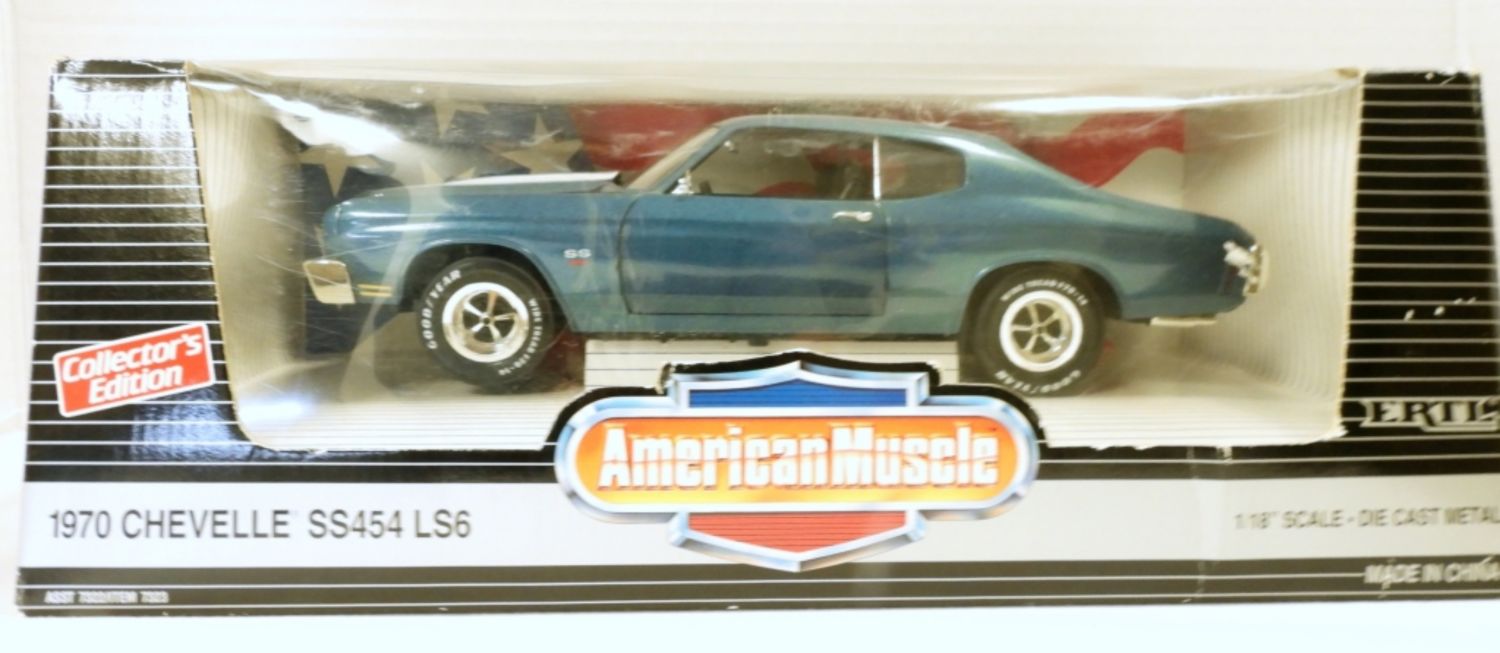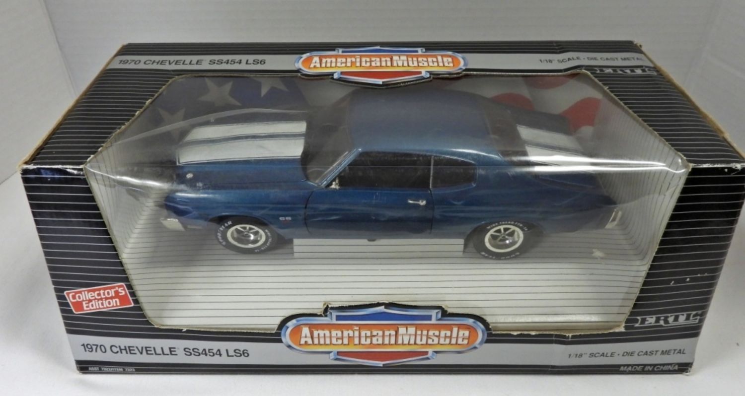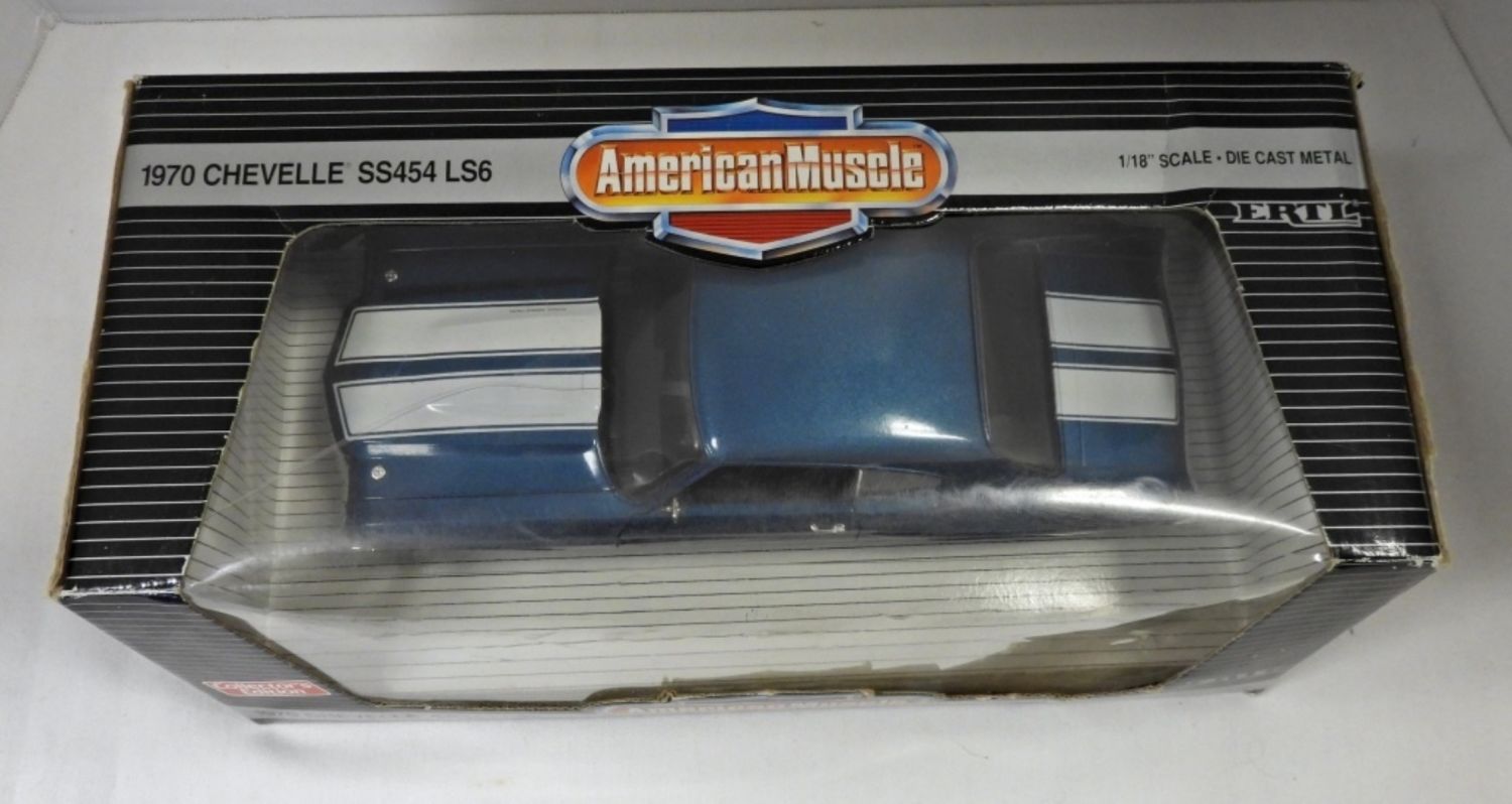 1:18 1970 CHEVY CHEVELLE SS454 LS6 FATHOM BLUE – 1993 ORIGINAL BOX (plastic has 4″ crack) OTHERWISE LIKE NEW