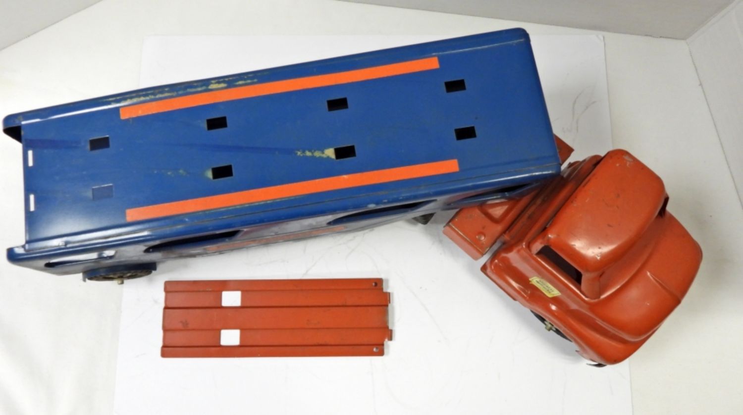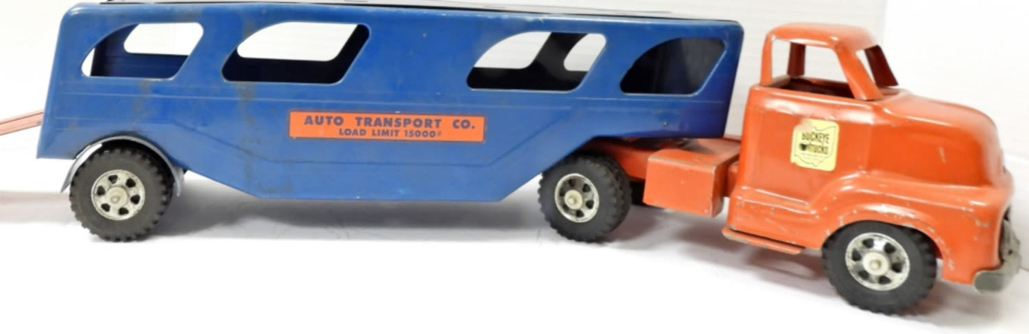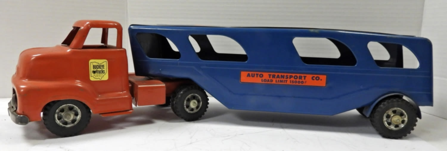 1950’s CIRCA – STURDY CONDITION with RAMP “BUCKEYE TRUCKS” THE OHIO ART CO, BRYAN OHIO
