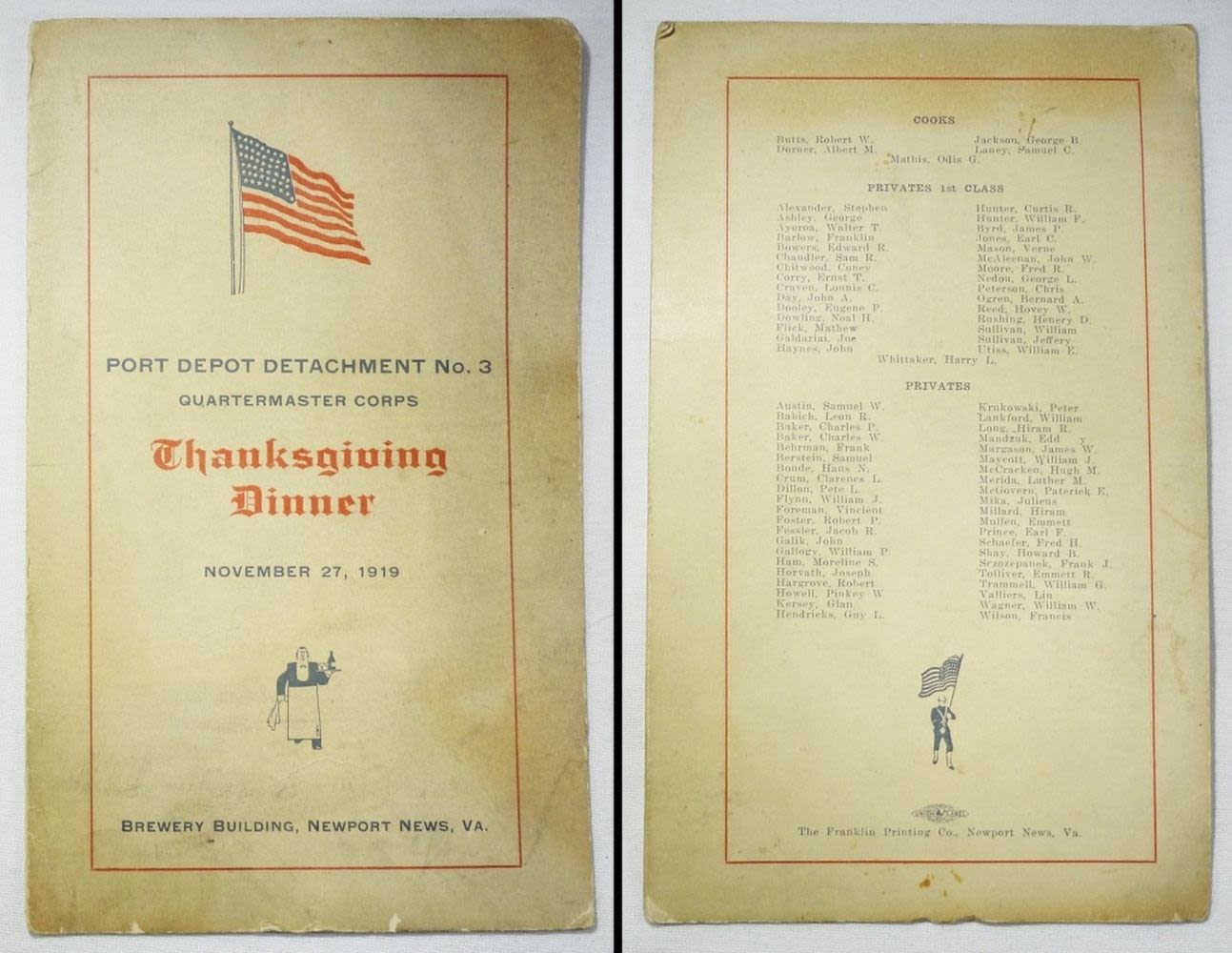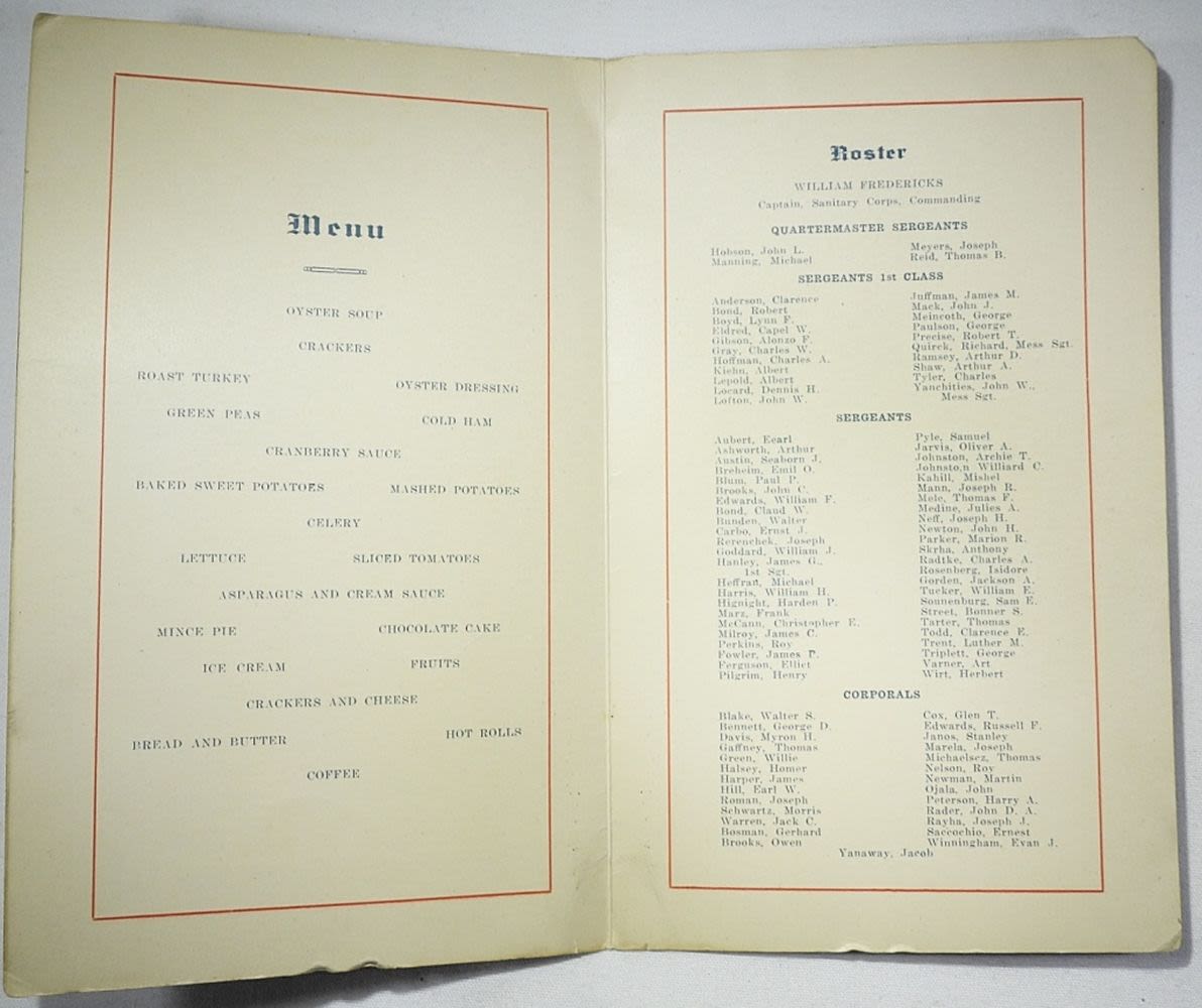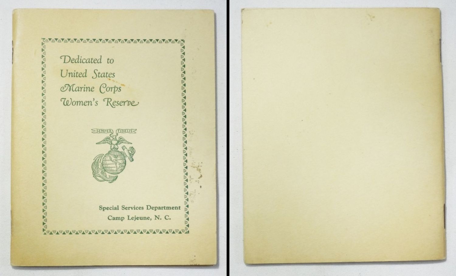 GRENADE TRAINING MANUAL, FM 21-13 SOLDIER’S GUIDE, THANKSGIVING DINNER NOV 27, 1919 MENU, WOMEN’S RESERVE MARINE CORPS HYMNAL, (4) VINTAGE PICTURES / POSTCARDS