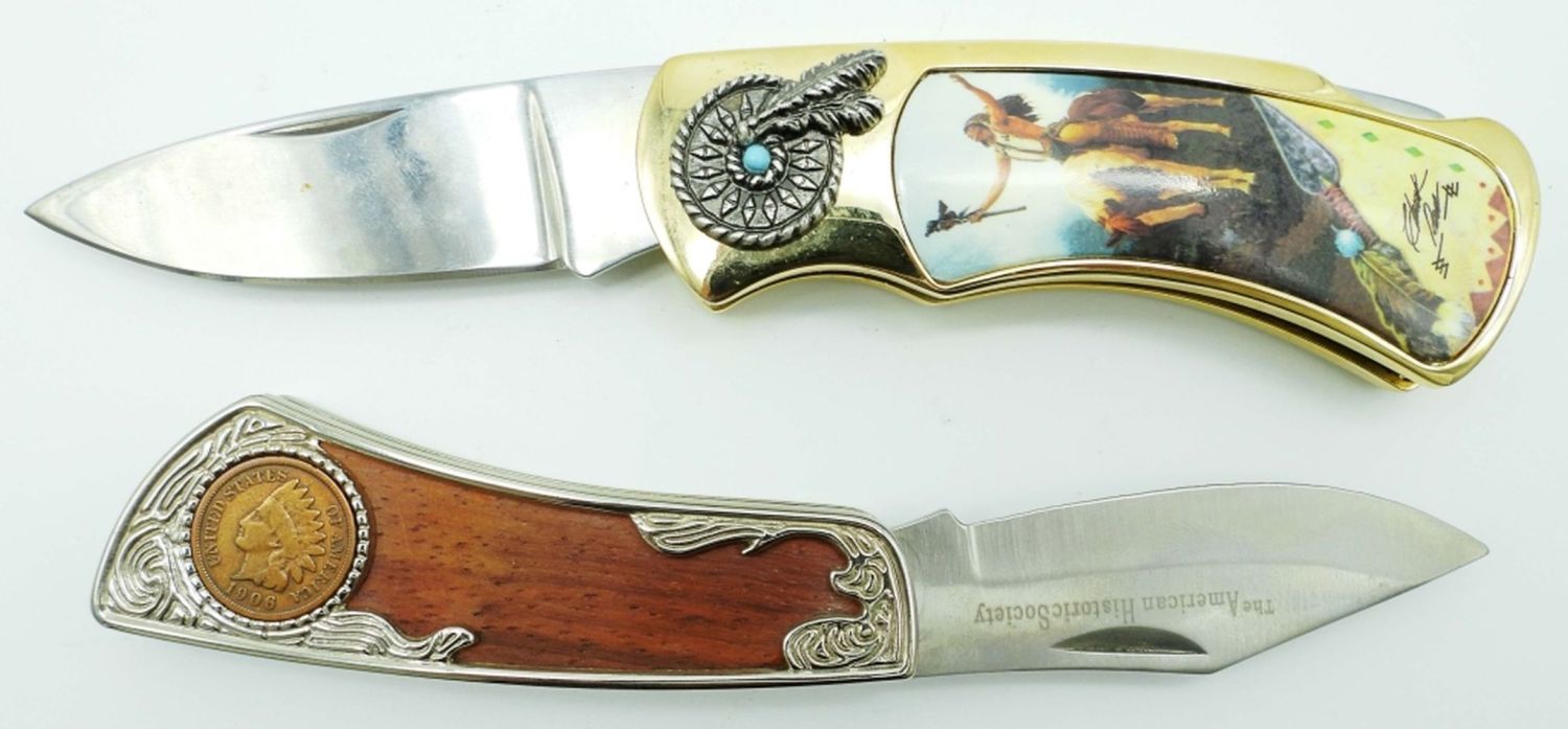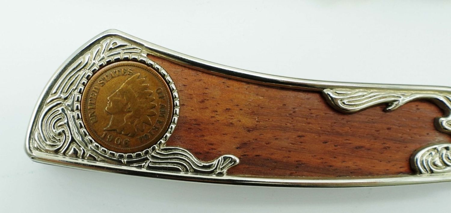 With 1906 Indian Head Cent, Jumper Classic Inanda Stables Shoal Creek Lockback Pocket Knife; Both Like New Condition.