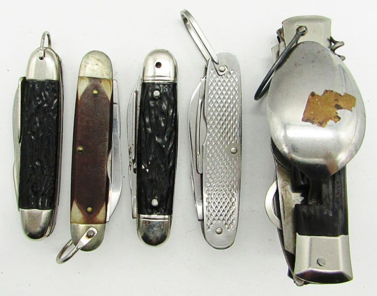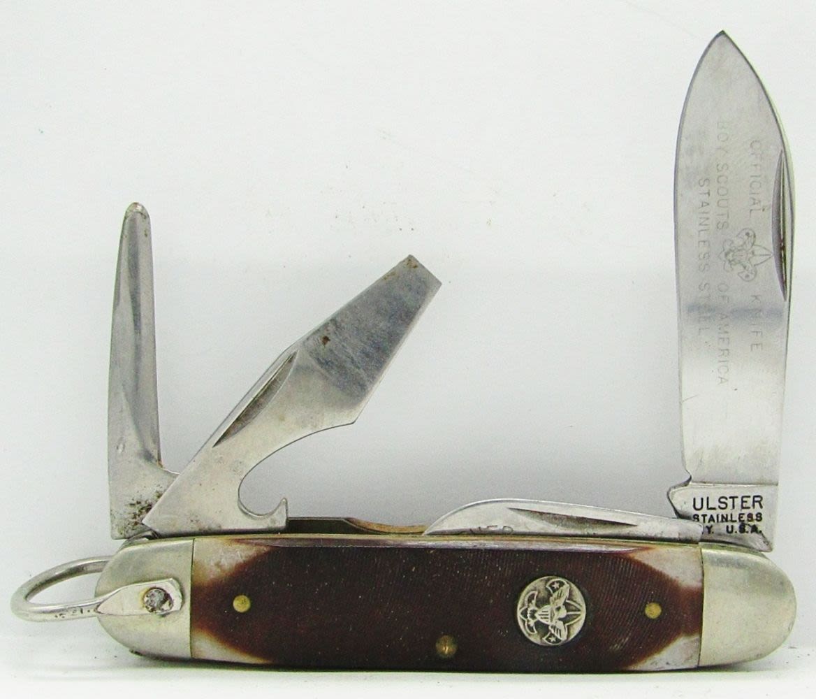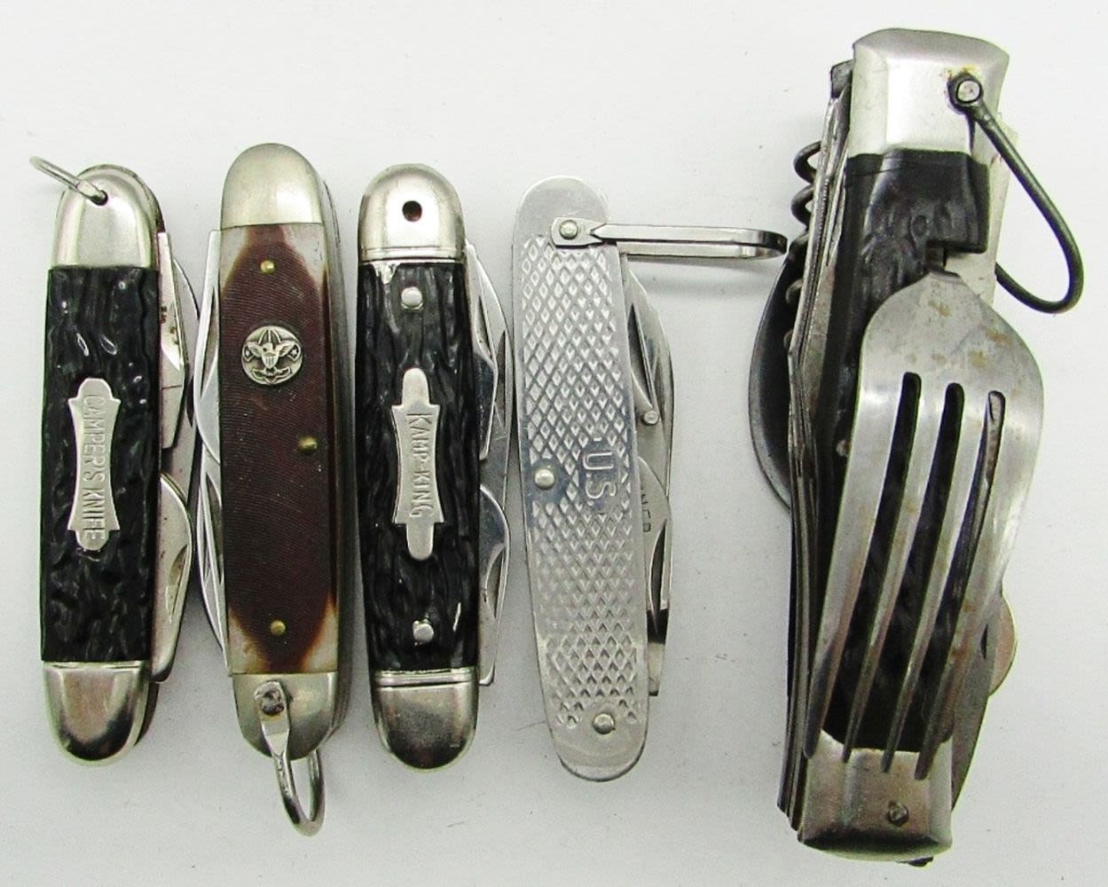 11-Tool/Blade Hobo Knife; 4-Blade Boy Scouts of America Ulster NY USA; 4-Blade/Tool Kamp King Imperial Prov. RI; 4-Blade/Tool Camper’s Knife Jowika Republic of Ireland; 4-Blade/Tool Imperial USA 1961; New & Used Conditions.