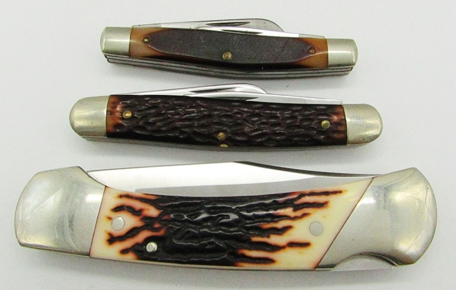 Single Blade Western USA 542 E Lockback; 3-Blade Kutmaster Utica NY USA O; 3-Blade Old Timer Schrade USA; New & Used Conditions.