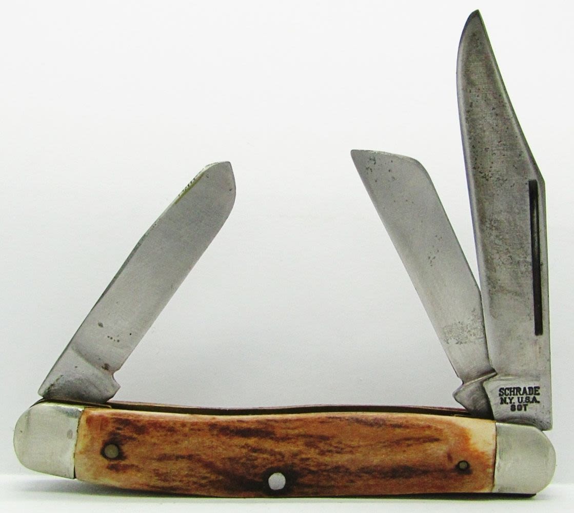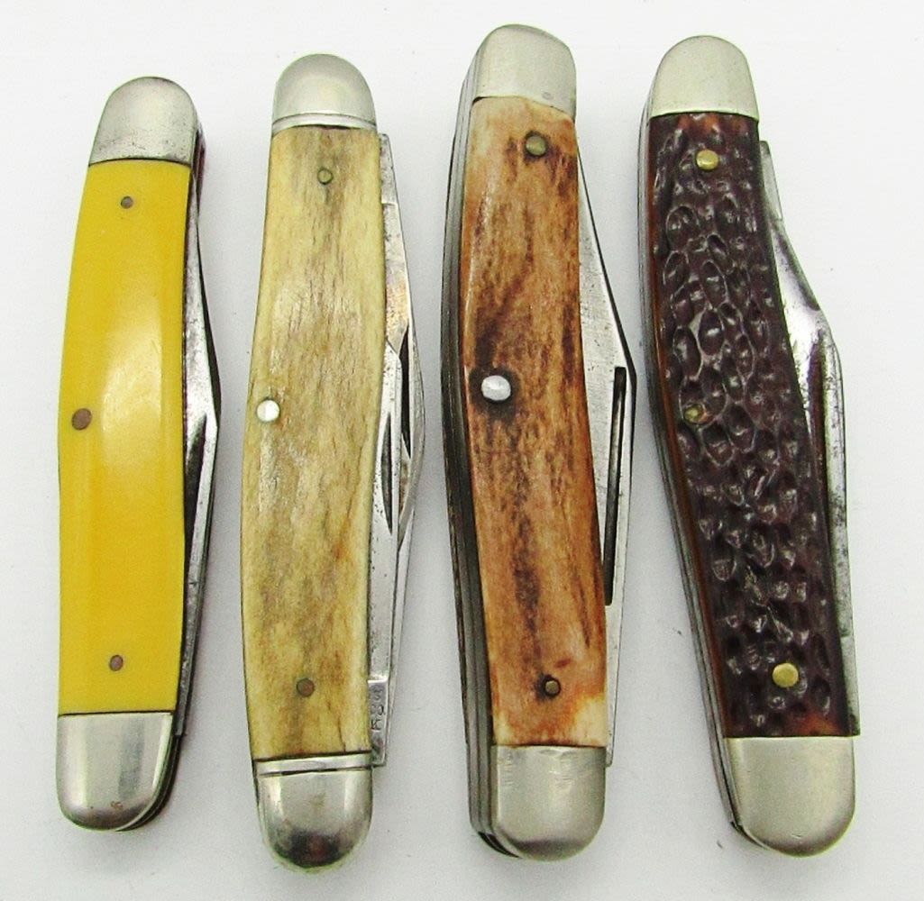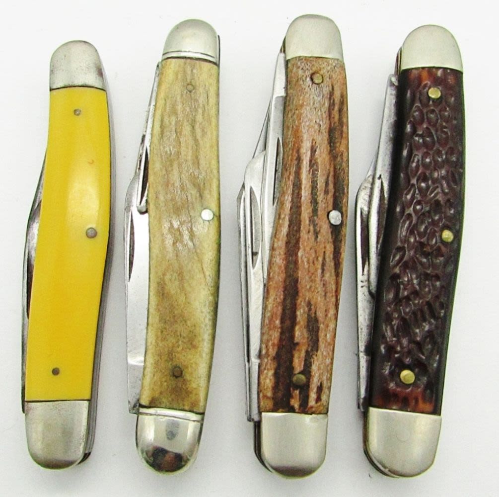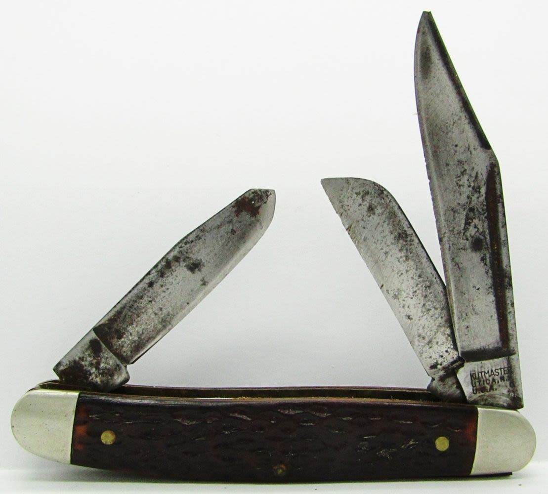 3-Blade Kutmaster Utica NY USA; 3-Blade Schrade NY USA 80T; 2-Blade Kabar; 4-Blade Camillus Cutlery Co. New York; Used Conditions.