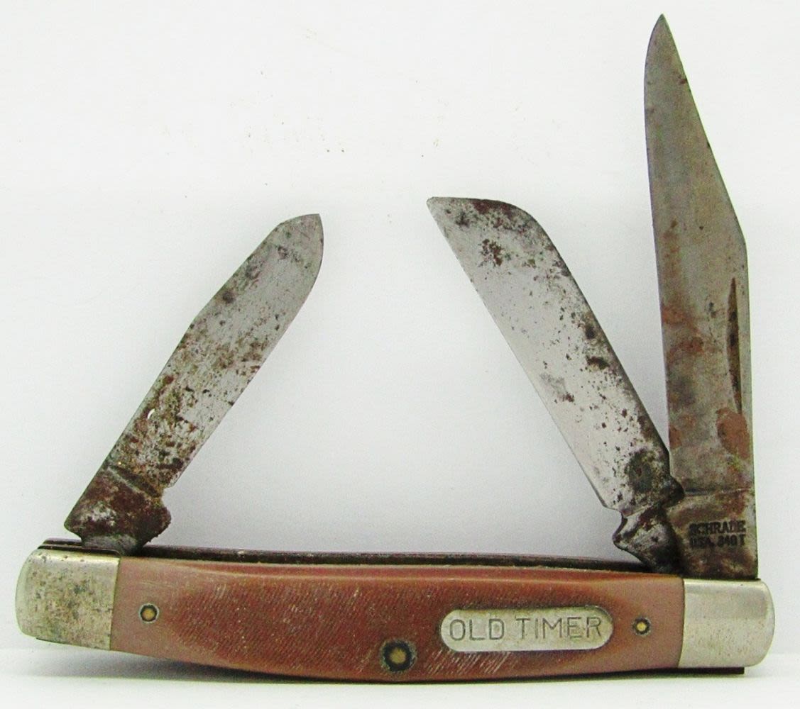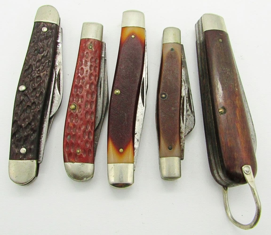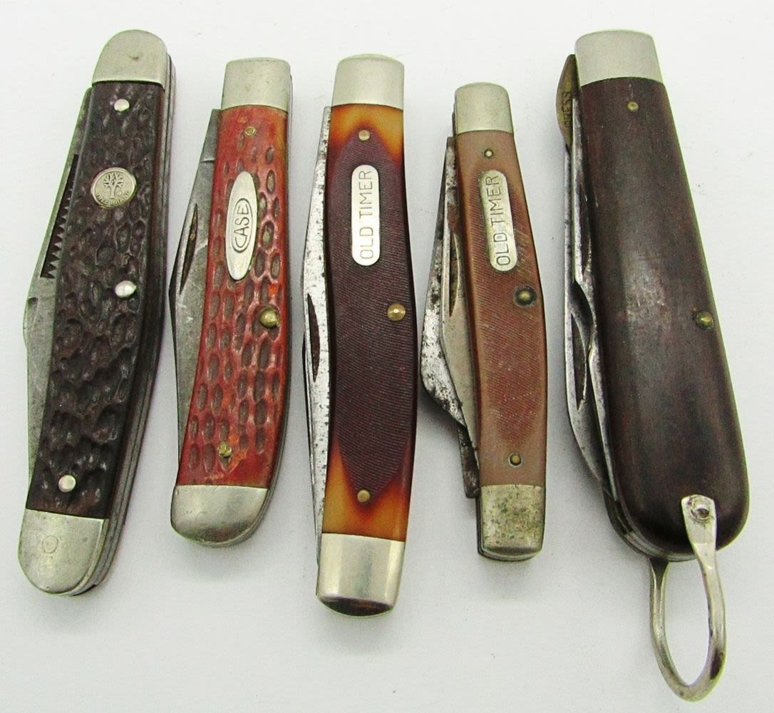 3-Blade Boker USA 8573; 2-Blade Schrade Old Timer 770T Improved Muskrat; 3-Blade Schrade Old Timer USA 340T; 2-Blade Ulster TL29 USA; 2-Blade CaseXX 6207; Used Conditions.