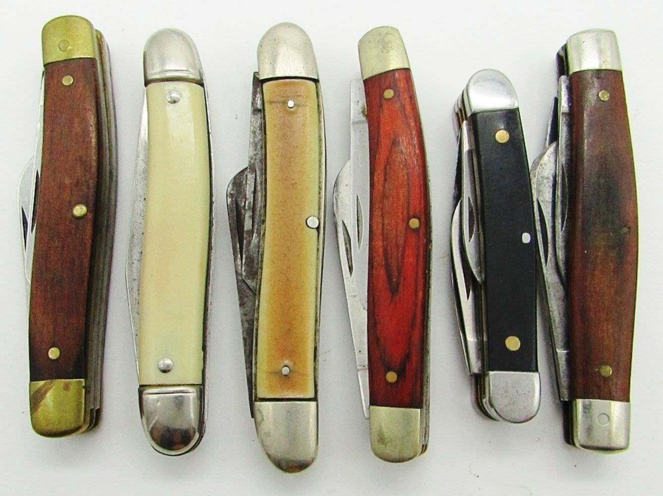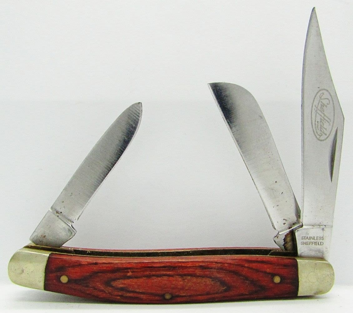 3-Blade CaseXX 8-Dot 4318HP; 2-Blade Colonial Prov USA; 3-Blade Schrade Walden 832; 3-Blade Sears Craftsman 95207; 3-Blade Sheffield; 3-Blade Stainless China; New & Used Conditions.