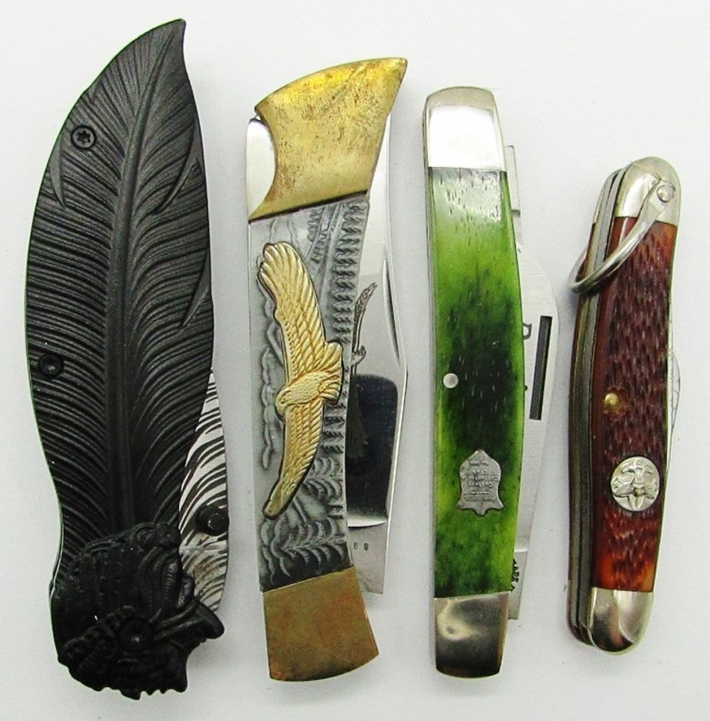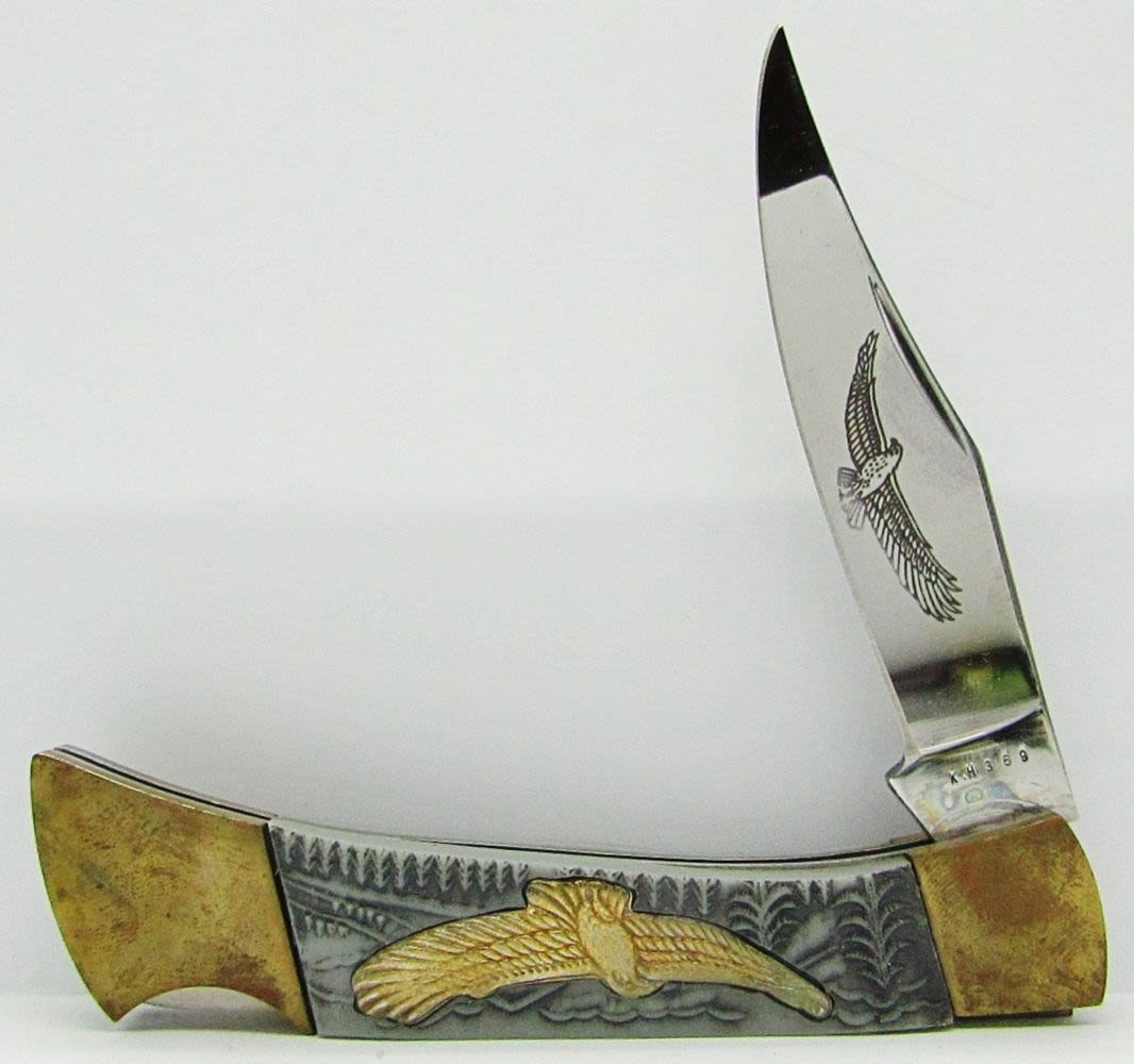 Remington Cutlery Club RC6163 2009; York Commemorative Knive 75th Anniversary Boy Scouts of America; Indian Folder Assisted Opening Etched Blade; American Eagle Folding Lockback Knife; All New In Box.