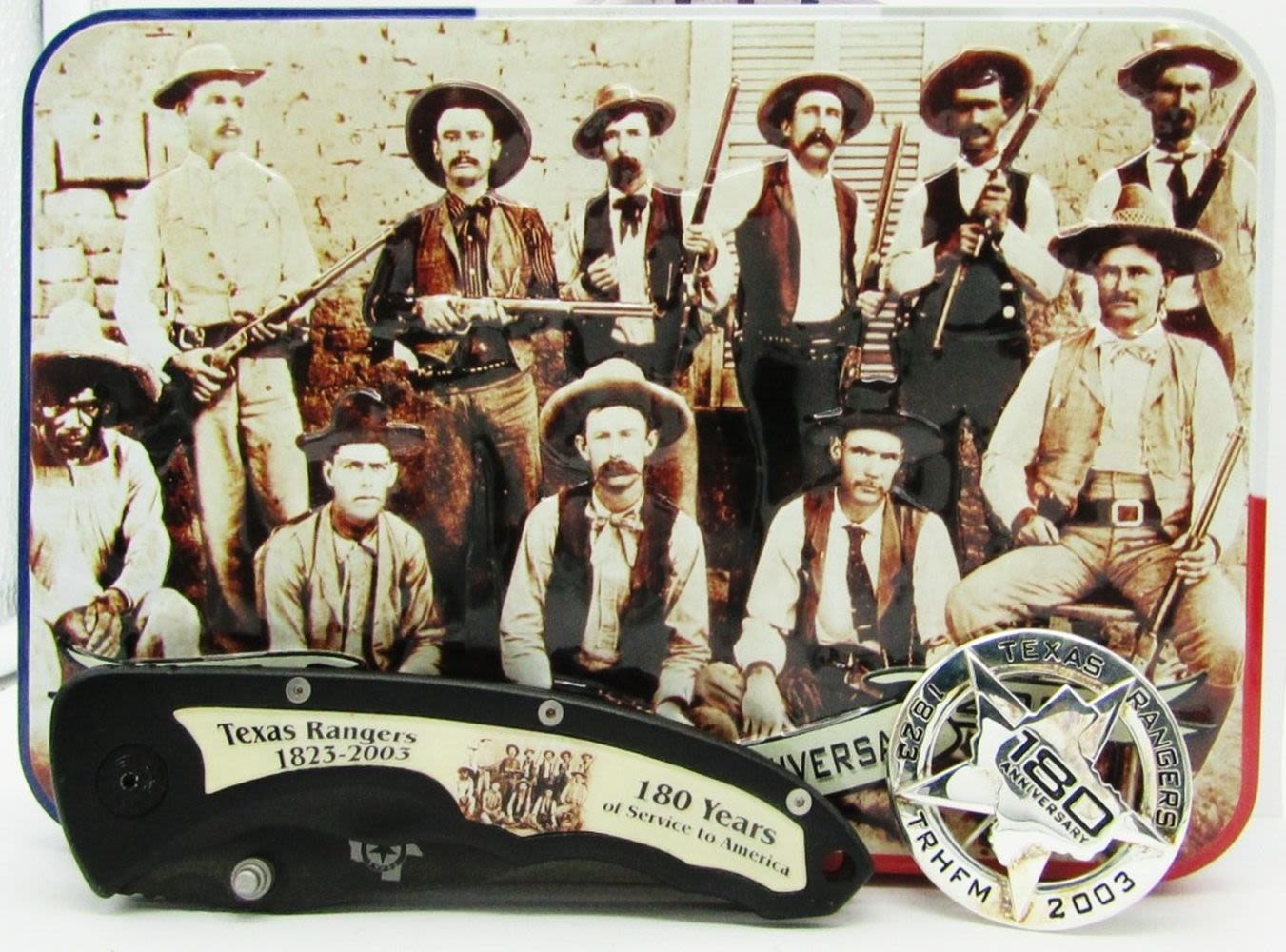 1823-2003 Texas Rangers 180th Anniversary Folding Pocket Knife & Badge in Collectible Tin! New!