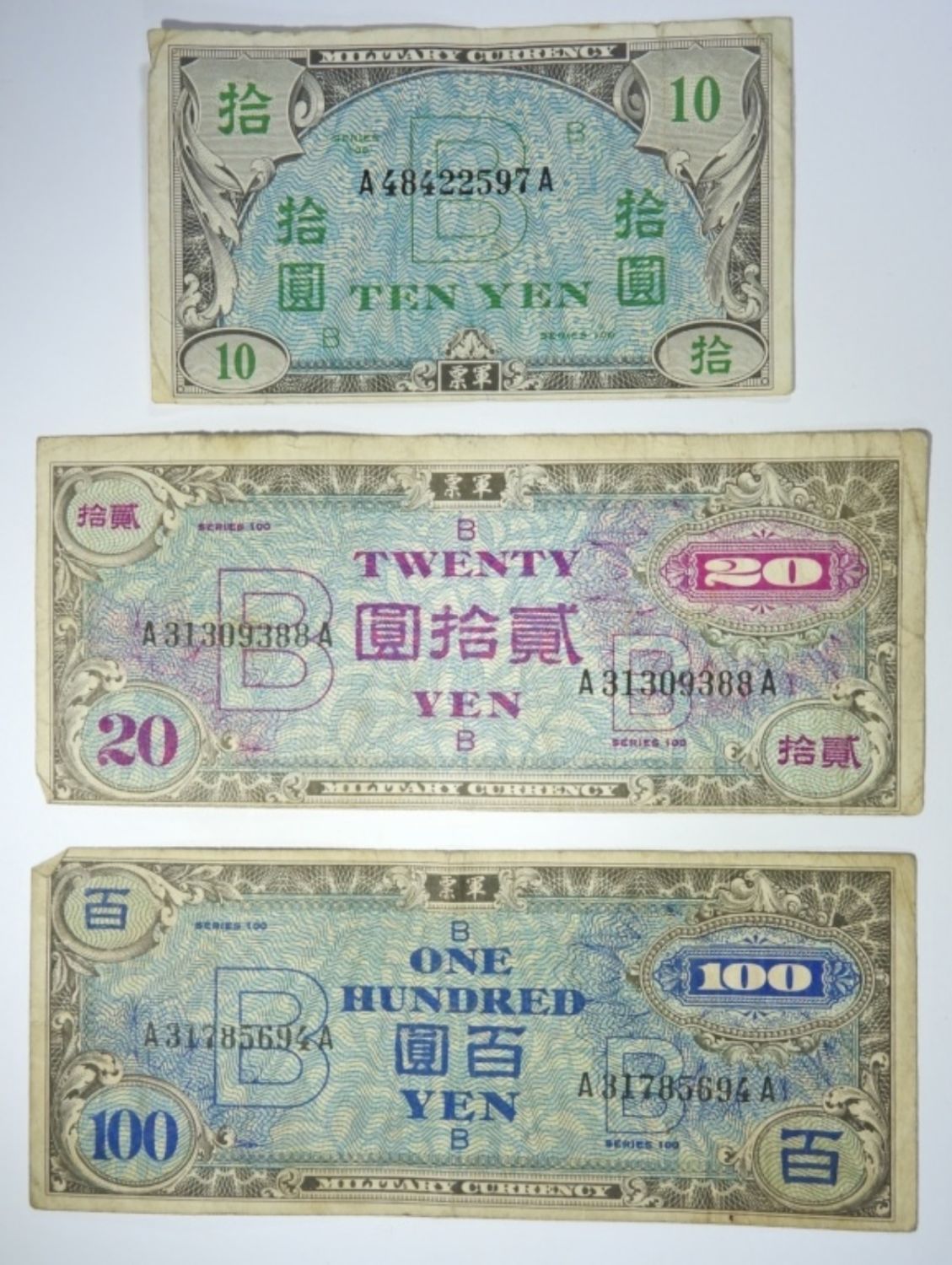 (1) 10 YEN, (1) 20 YEN, & (1) 100 YEN.
