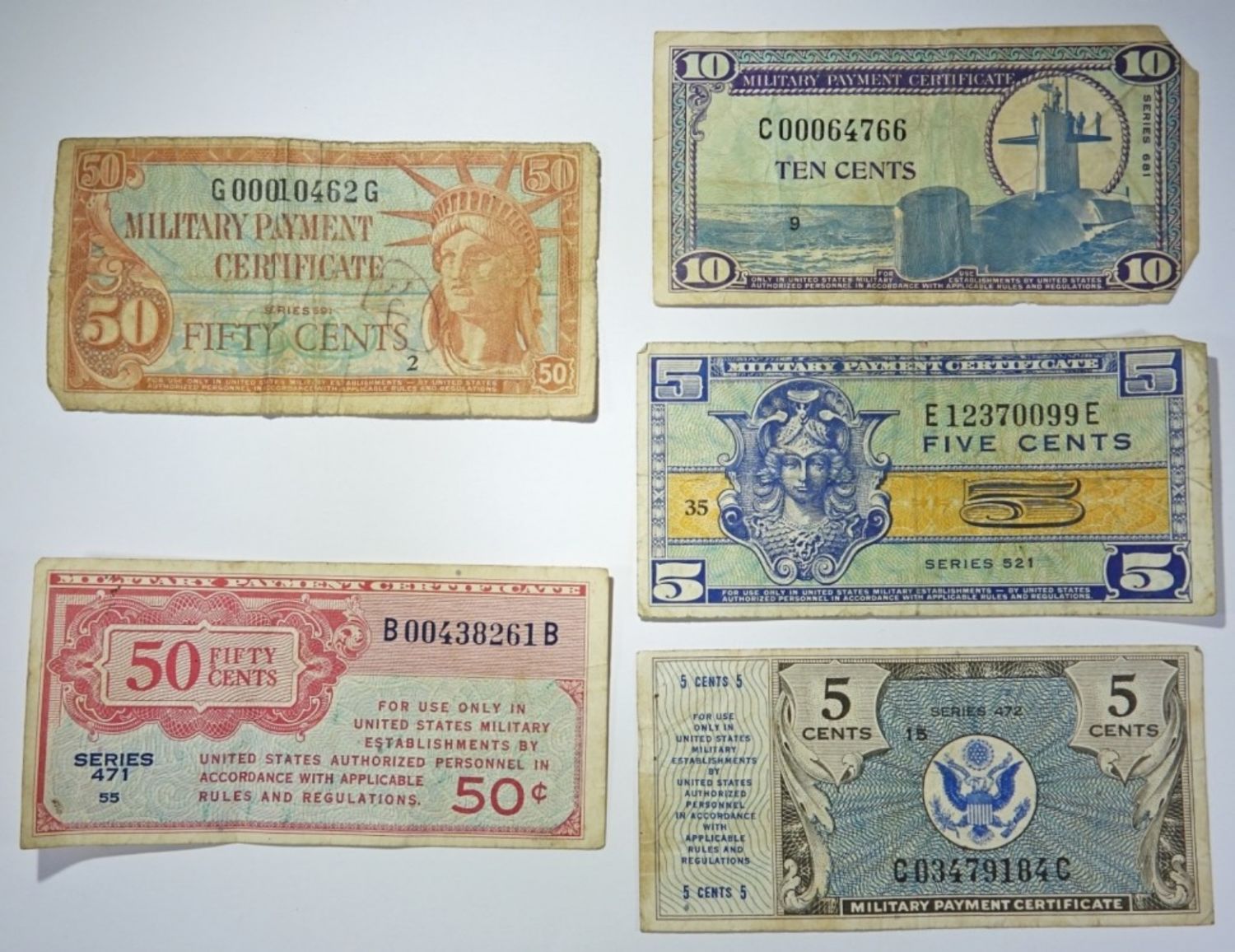 (2) 5 CENTS SERIES 472 & 521, (1) 10 CENT SERIES 681, & (2) 50 CENTS SERIES 471 & 591.
