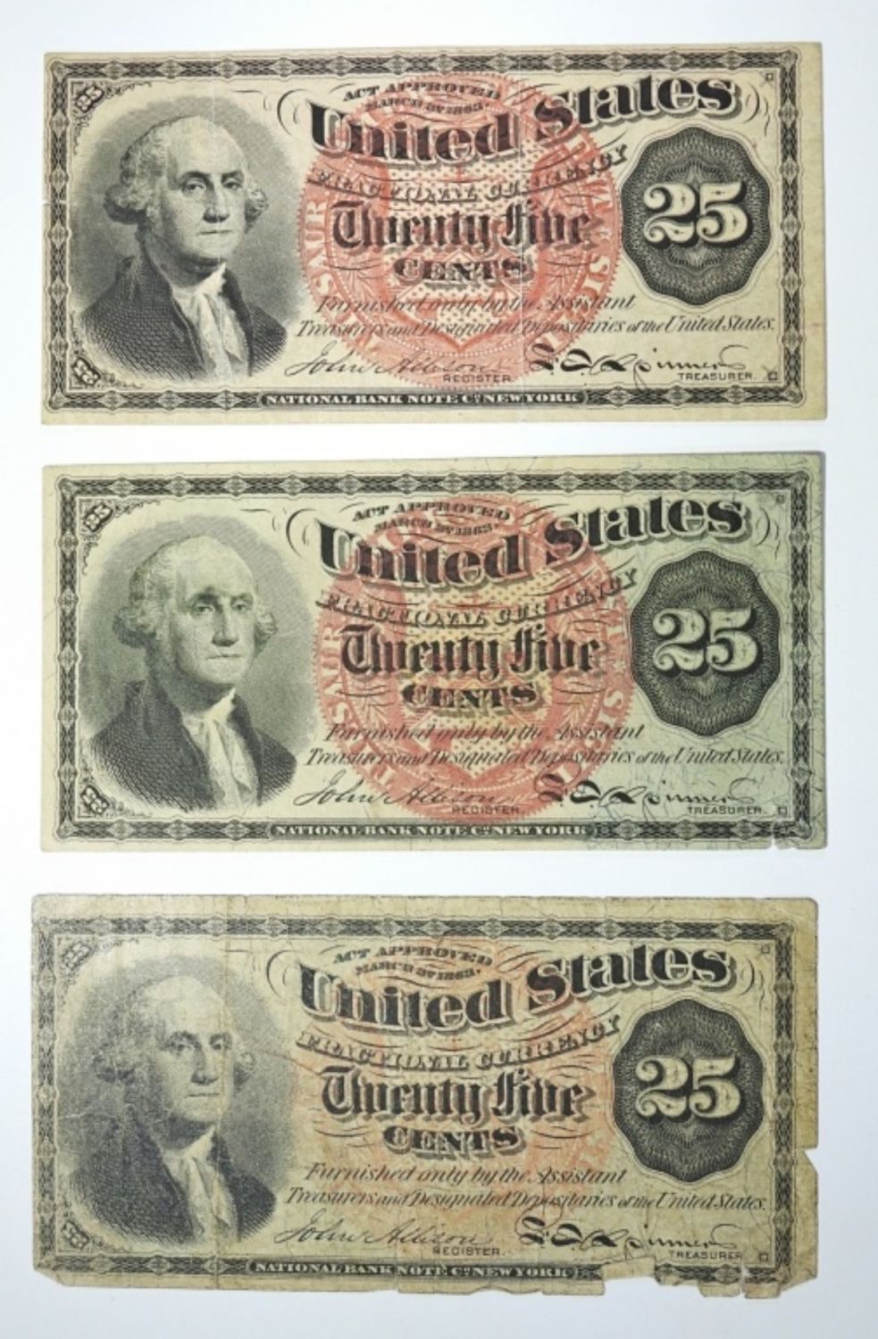 (3) 25 CENTS FRACTIONAL CURRENCY PIECES