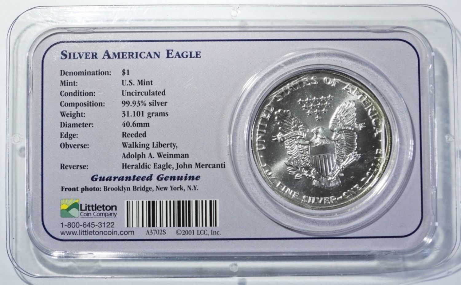 AMERICAN SILVER EAGLE 1ozt .999 PURE SILVER