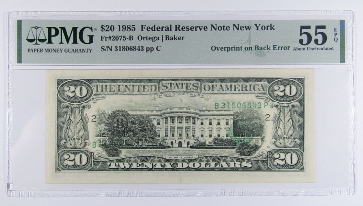 NEW YORK Fr#2075-B, OVERPRINT ON BACK ERROR.
