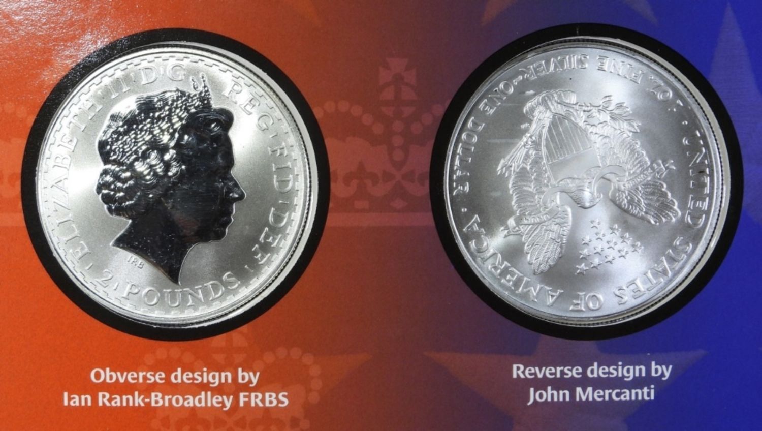 UNITED STATES AND UNITED KINGDOM SILVER BULLION COIN SET: 2003 AMERICAN SILVER EAGLE & 2002 GREAT BRITAIN SILVER BRITANNIA. IN OGP