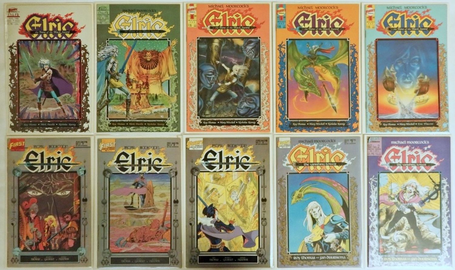ELRIC THE BANE OF THE BLACK SWORD #1, 2, 4, 5, 6; SAILOR ON THE SEAS OF FATE #2, 4, 7; VANISHING TOWER #1 & #2; ALL BOARDED & SLEEVED