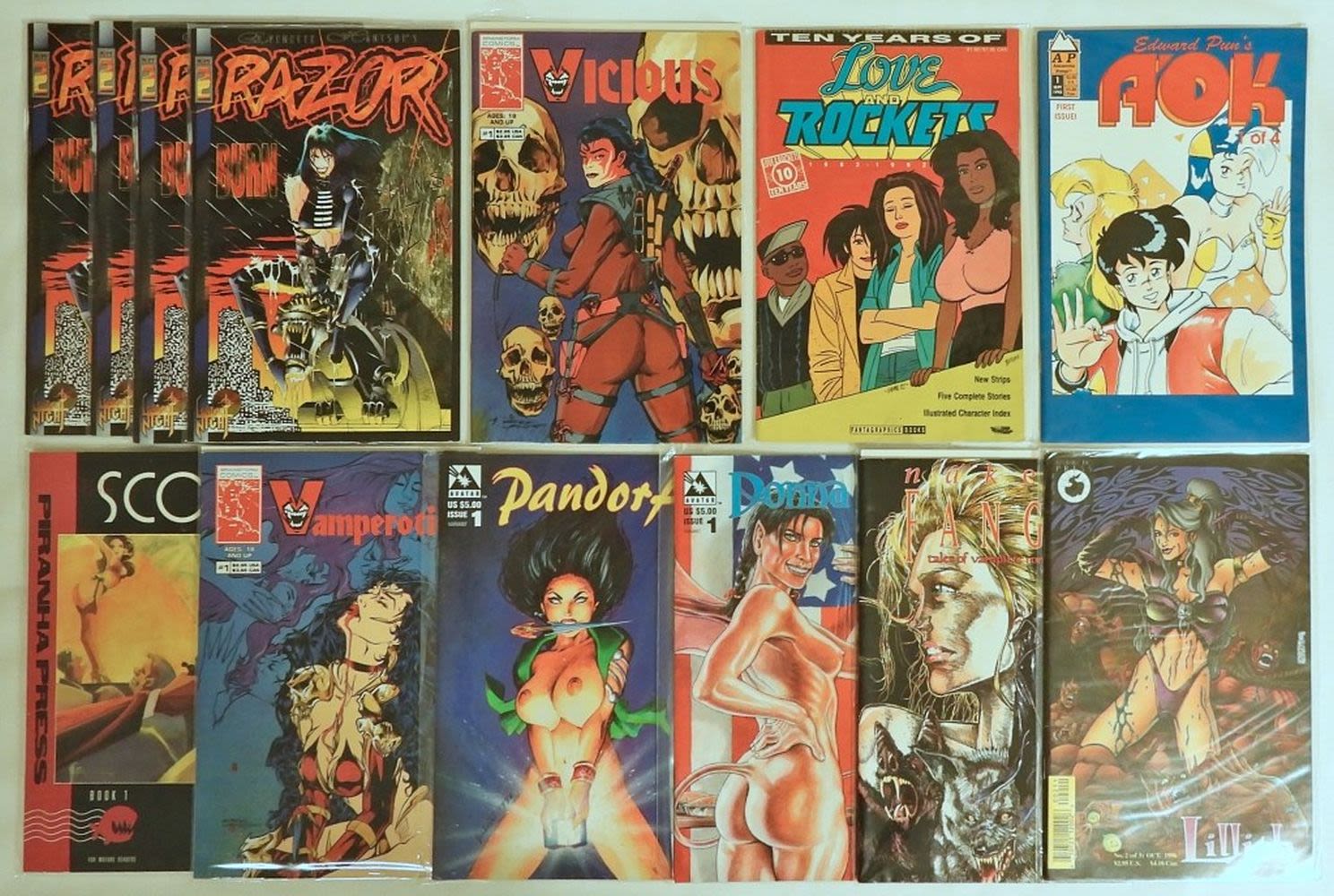 (4) RAZOR ISSUE #2; LOVE & ROCKETS, PANDORA, VICIOUS, VAMPEROTICA; ALL SLEEVED
