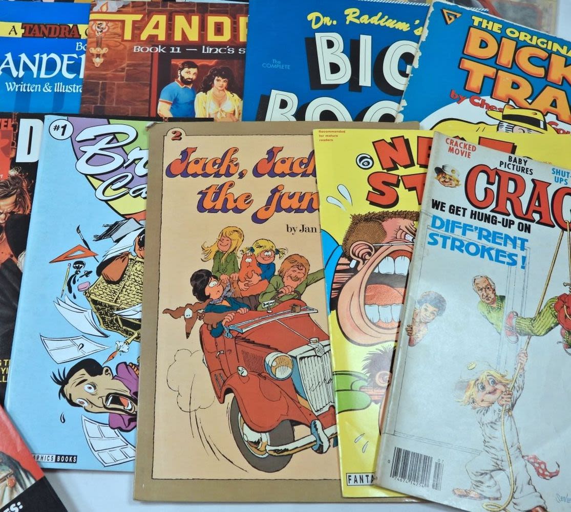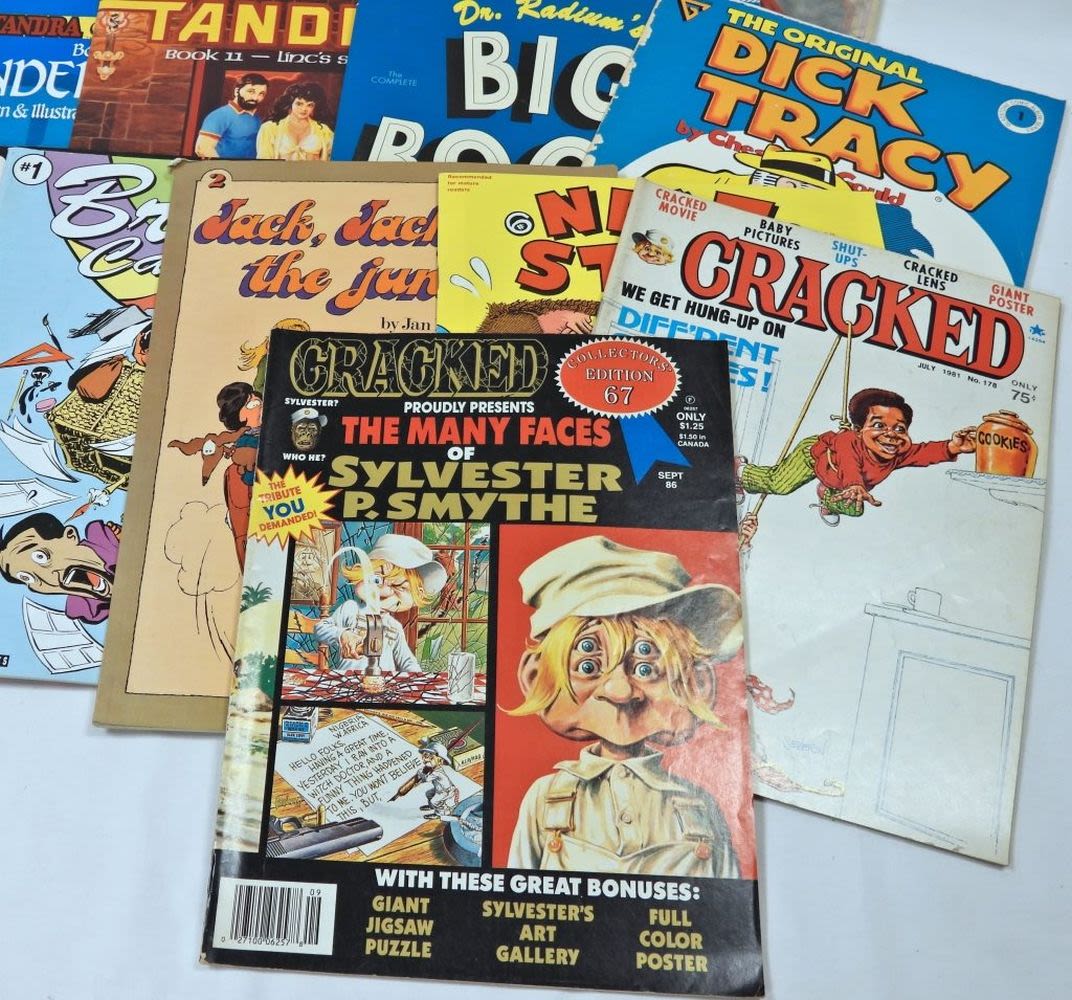 TANDRA, DR. RADIUM’s BIG BOOK, GLADSTONE DICK TRACY, BRAIN CAPERS, JACK, JACKY and the junior, NEAT STUFF, CRACKED, STARLOG, DARKMAN & #1 CARTOON QUARTERLY MICKEY MOUSE