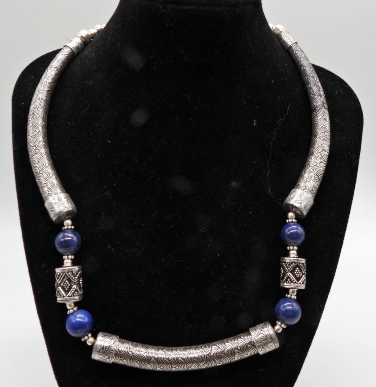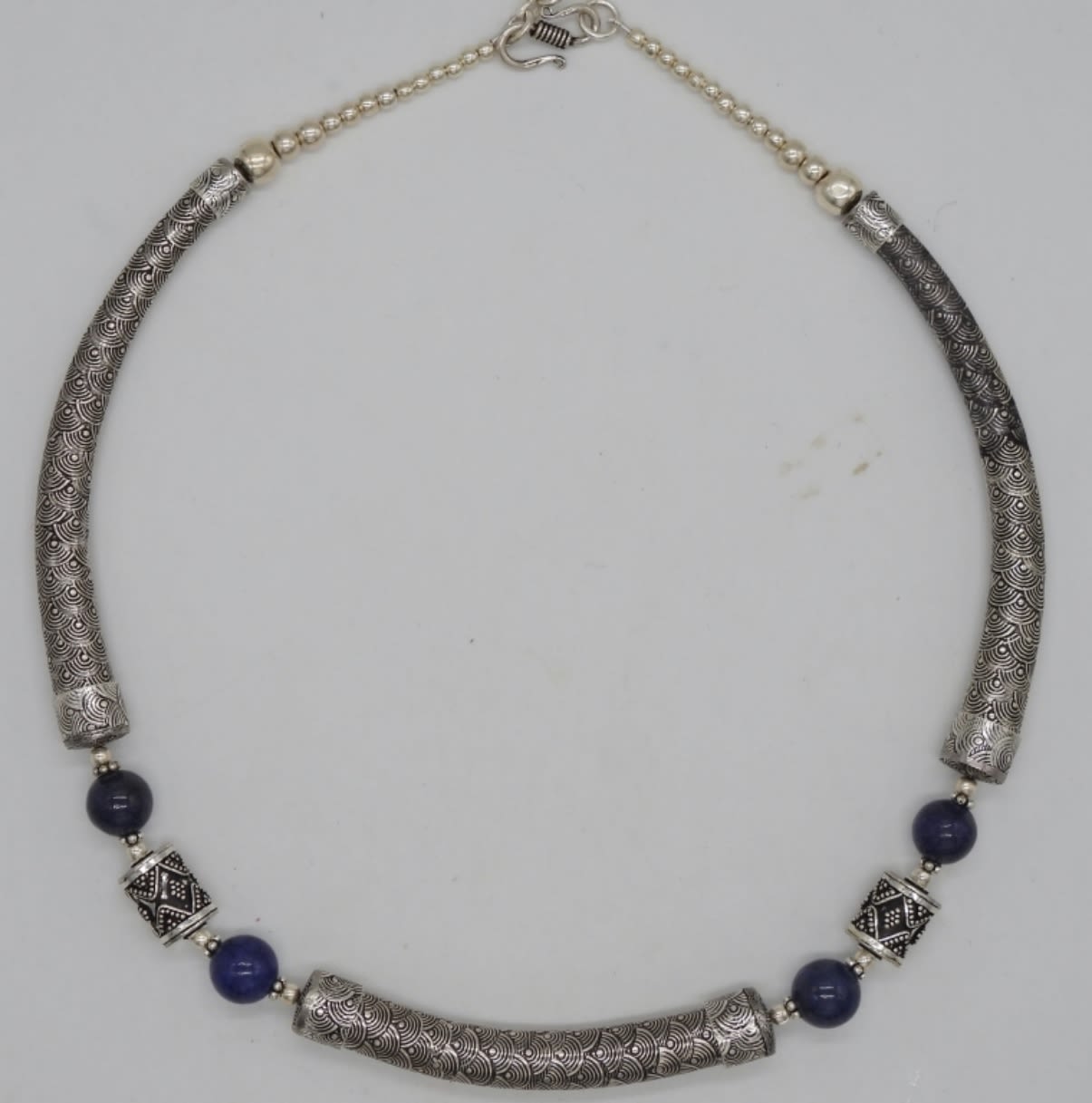 30DWT, 19IN LONG, SWIRL DESIGN, WITH LAPIS BEADS, HOOK CLASP ADJUSTABLE