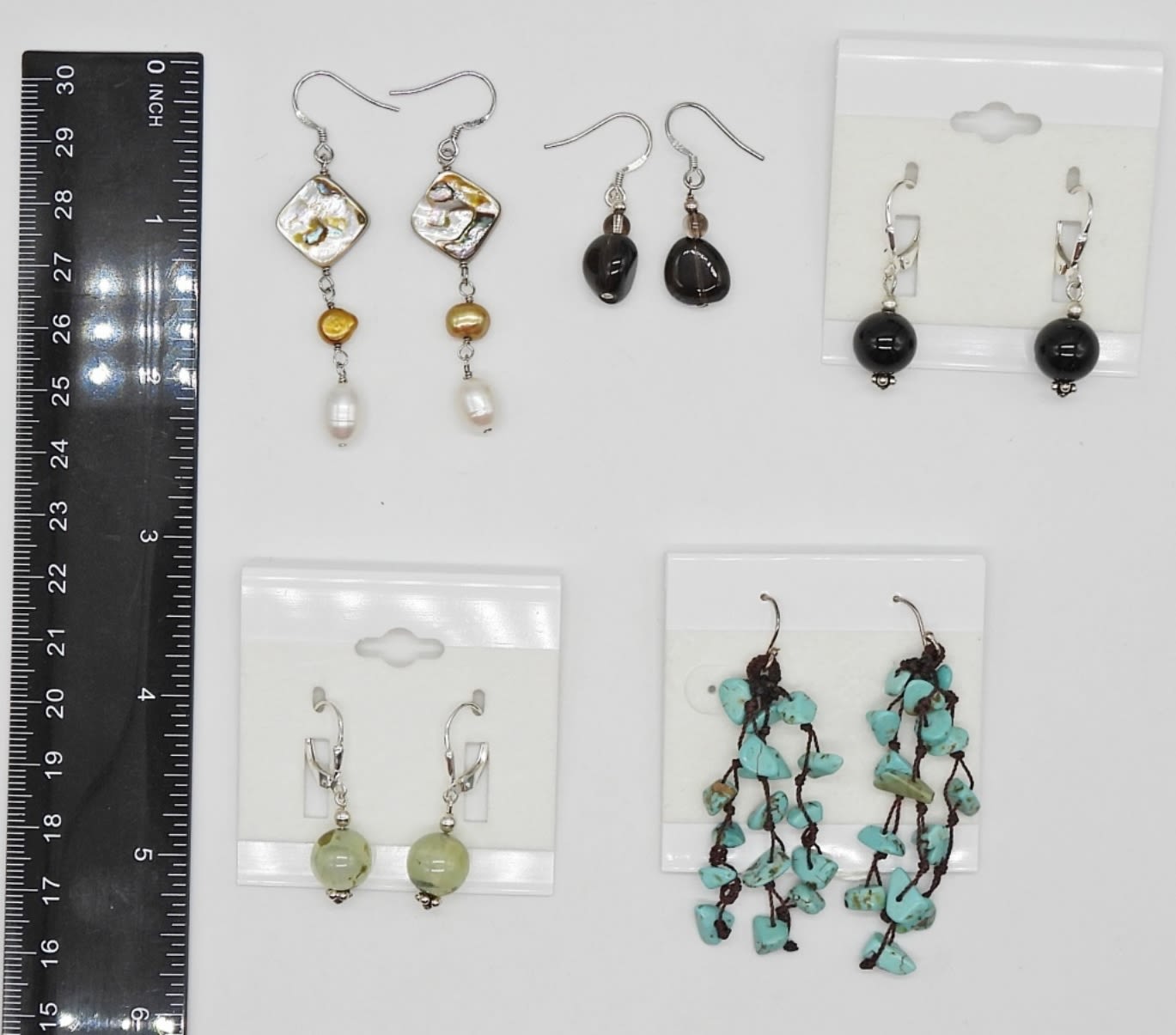 29.6 DWT STERLING EARRINGS WITH TURQUOISE, ABALONE, PEARL, AND BLACK ONYX; (4) MARKED 925