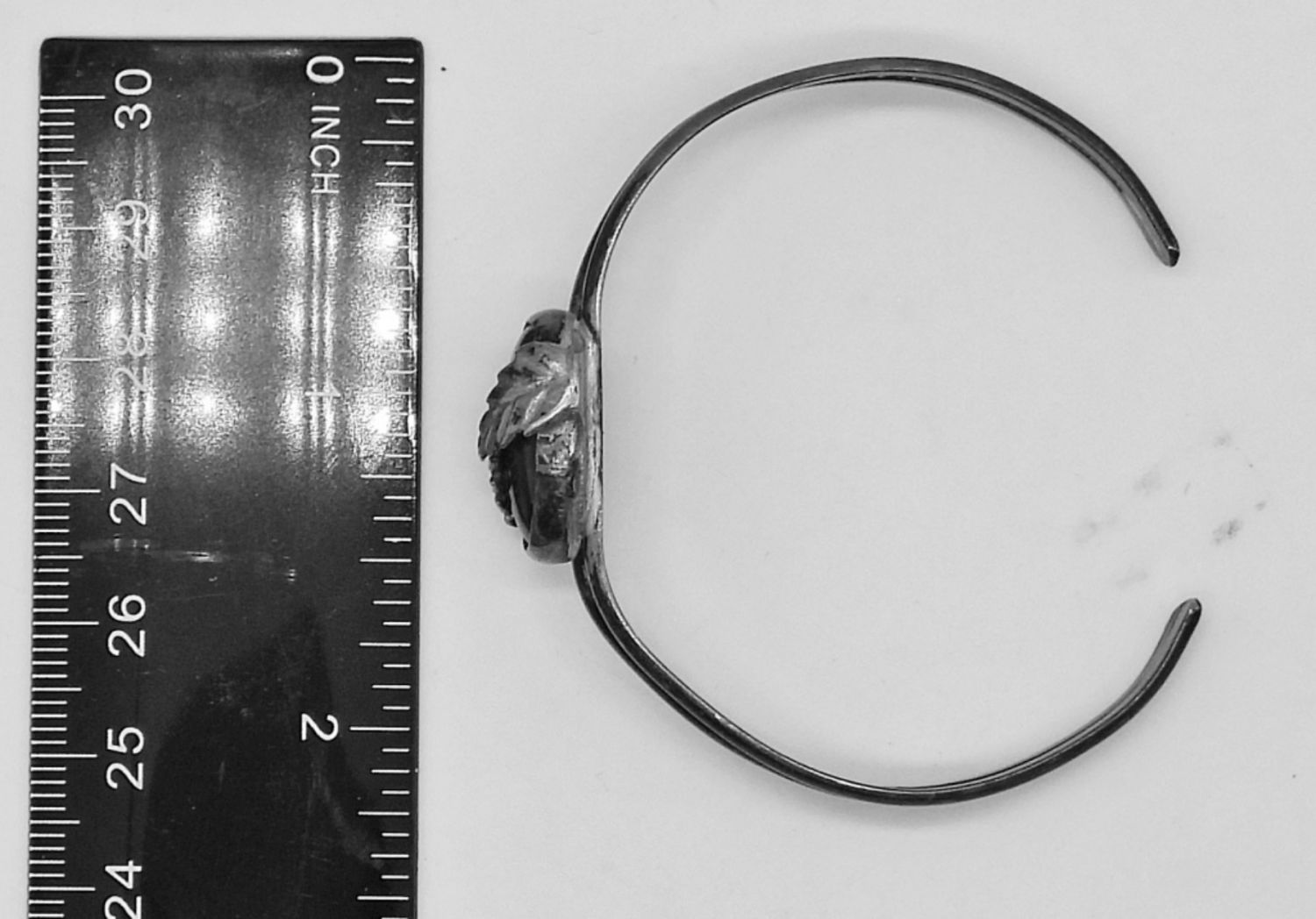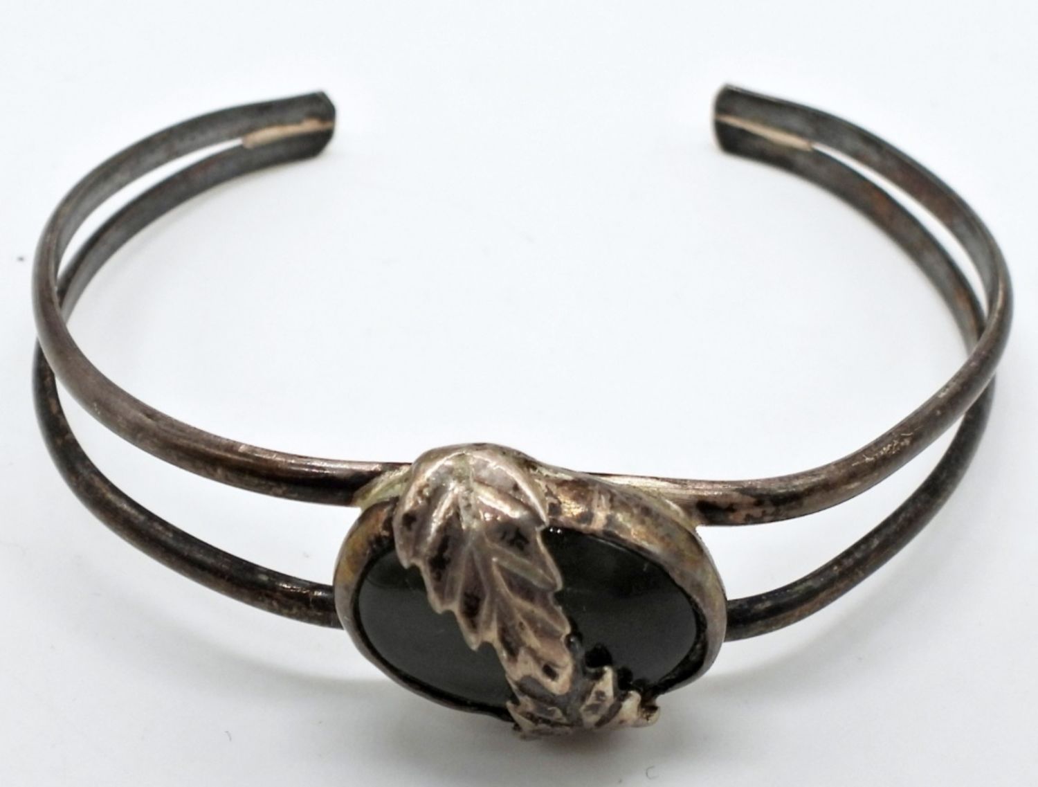 13 DWT 2.5 INCH STERLING CUFF STYLE BRACELET WITH JADE CENTER STONE
