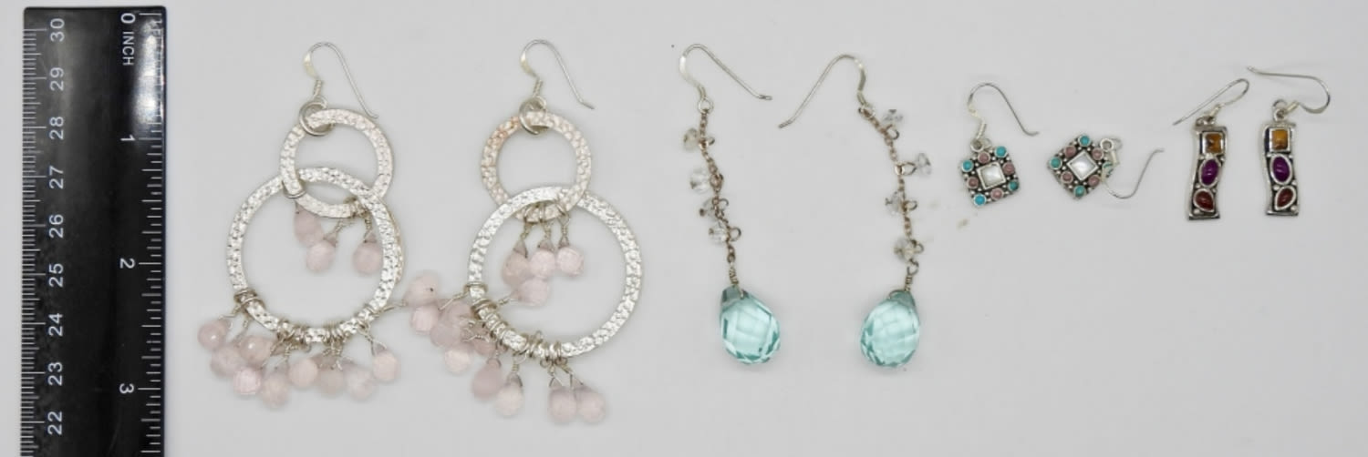 39.6 DWT STERLING DANGLY PIERCED EARRINGS WITH GEMSTONES & NATURAL STONES