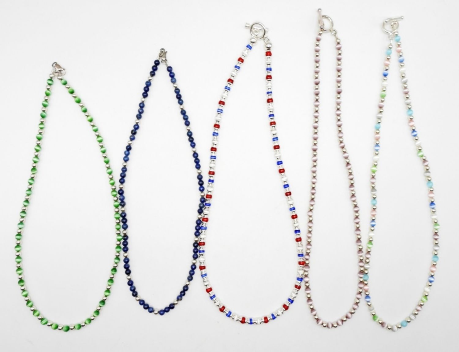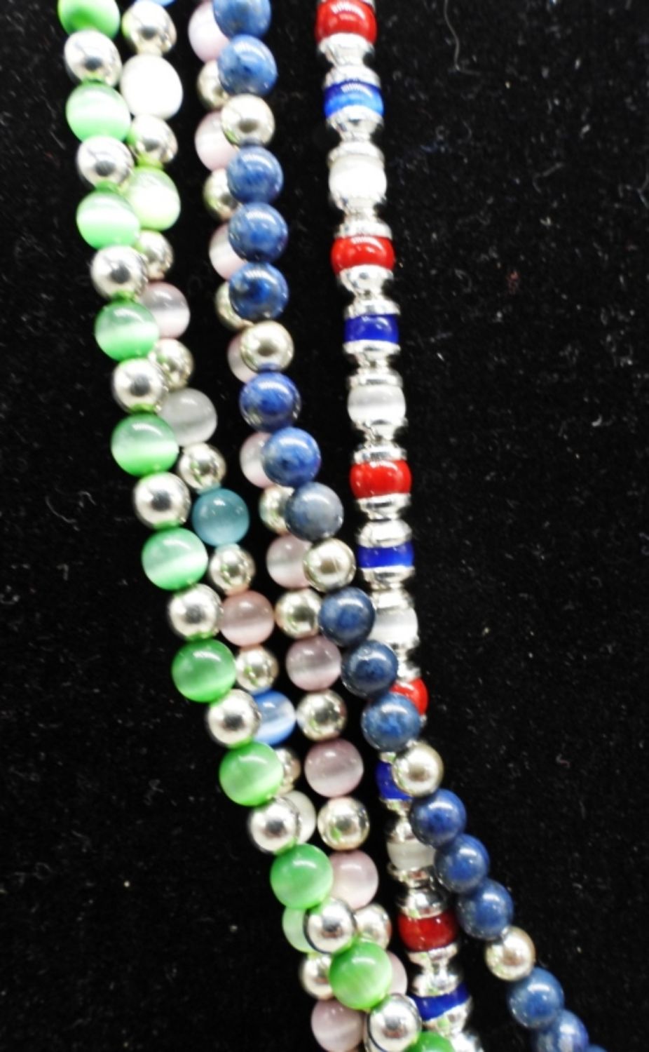 3- WITH TOGGLE CLASP STAMPED 925 AND ARE 19IN LONG, 2- WITH LOBSTER CLASP BOTH 16IN LONG, STAMPED 925 ON THE CLASP