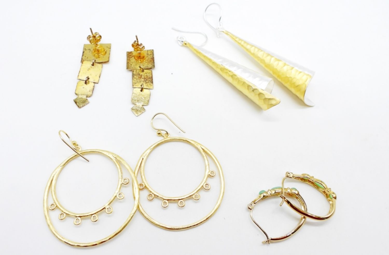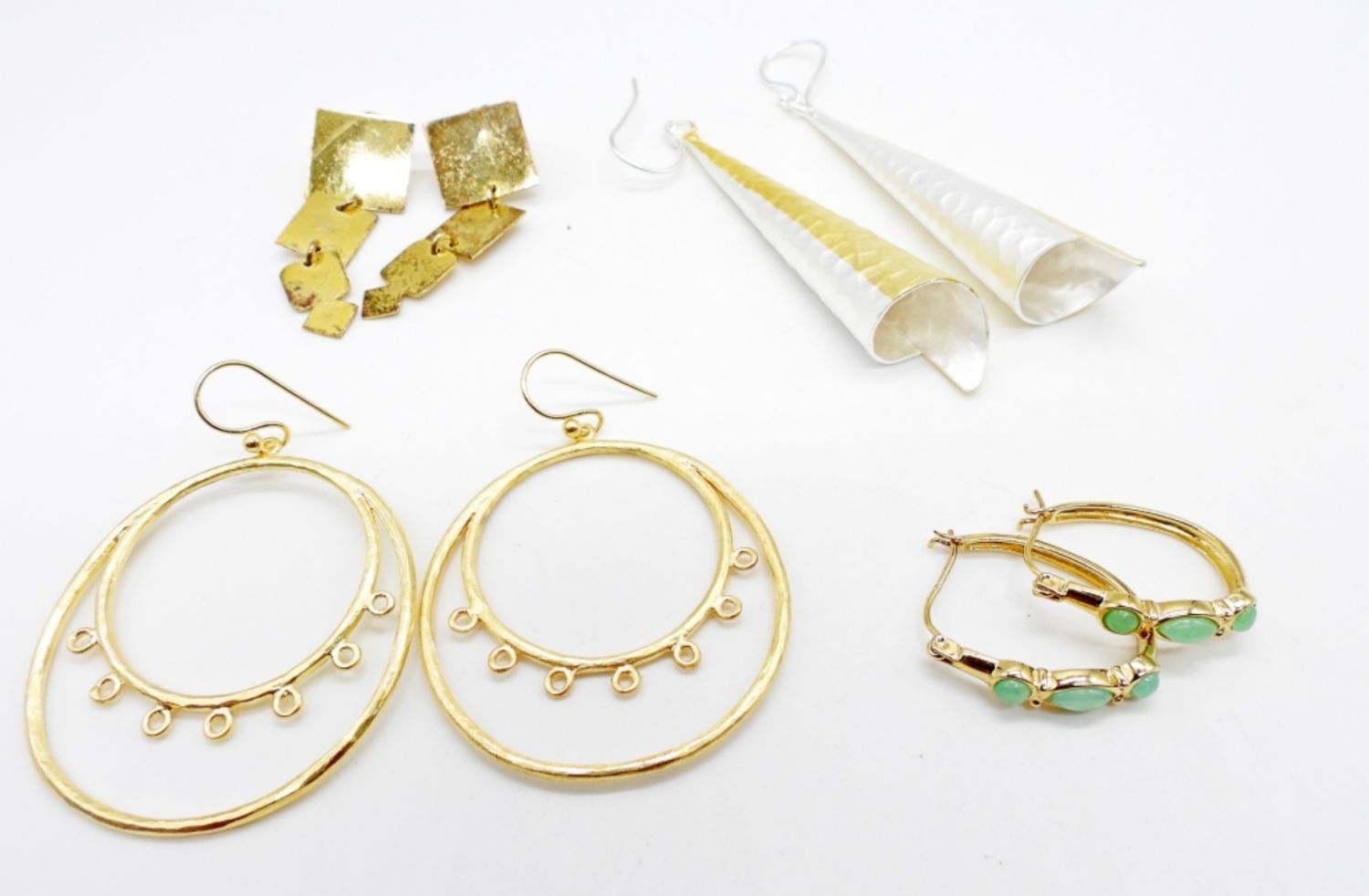 19DWT, ALL DIFFERENT STYLES, ONLY 2 PAIRS HAVE THE STAMPED 925 (SQUARE SET AND THE HUGGIE SET), ALL PIERCED