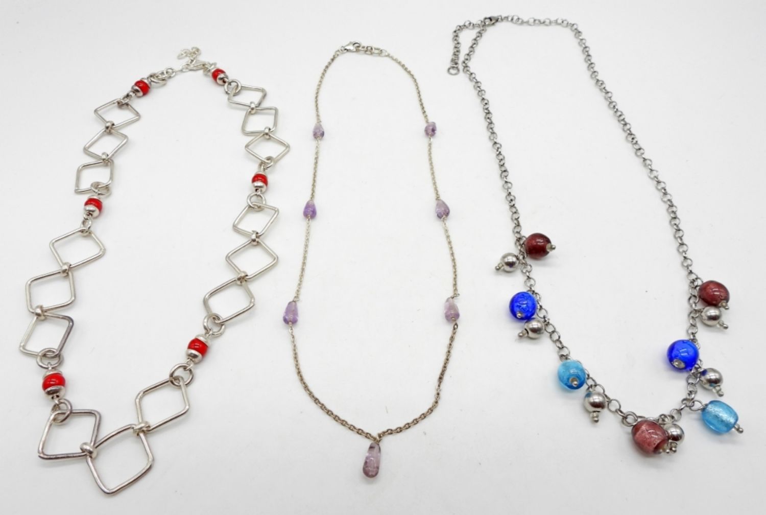 26DWT, 1- 15 1/2IN LONG, 1-16 1/2IN LONG, 1-19IN LONG, STAMPED 925 ON THE LOBSTER CLASPS, 2 ARE ADJUSTABLE