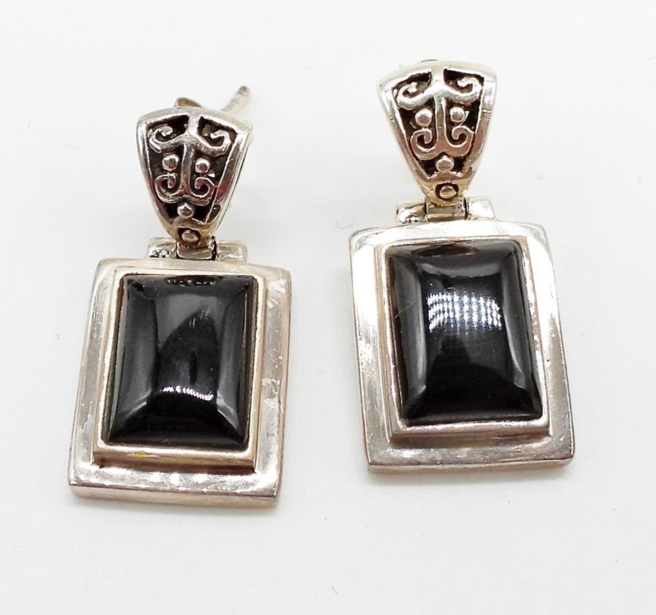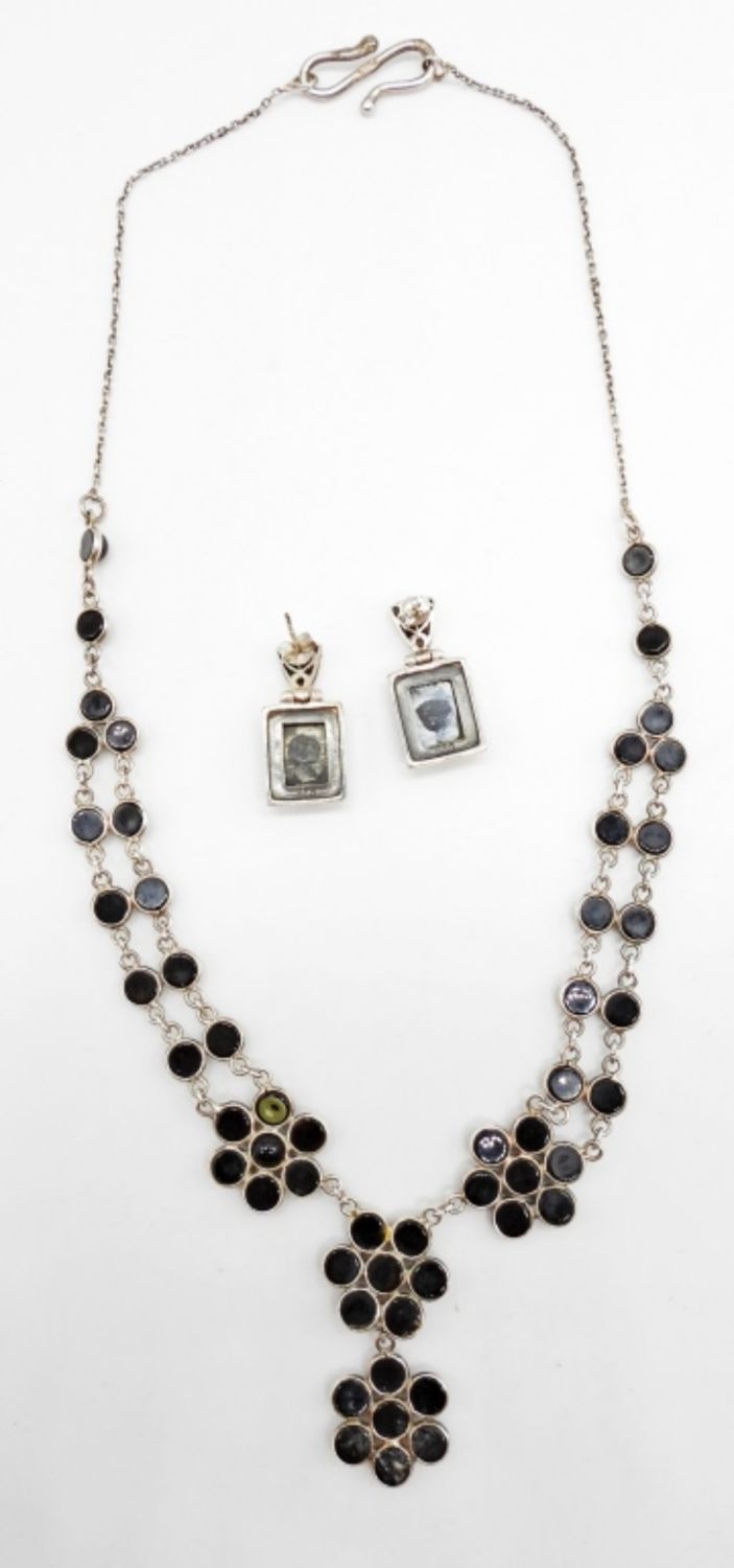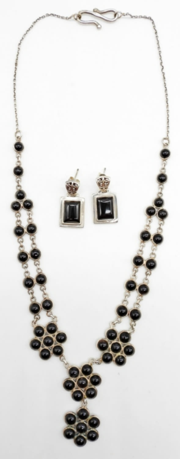 14DWT, 17IN LONG WITH HOOK CLASP, STAMPED 925 ON CLASP,PAIR OF PIERCED BLACK ONYX, STAMPED 925 ON THE BACK