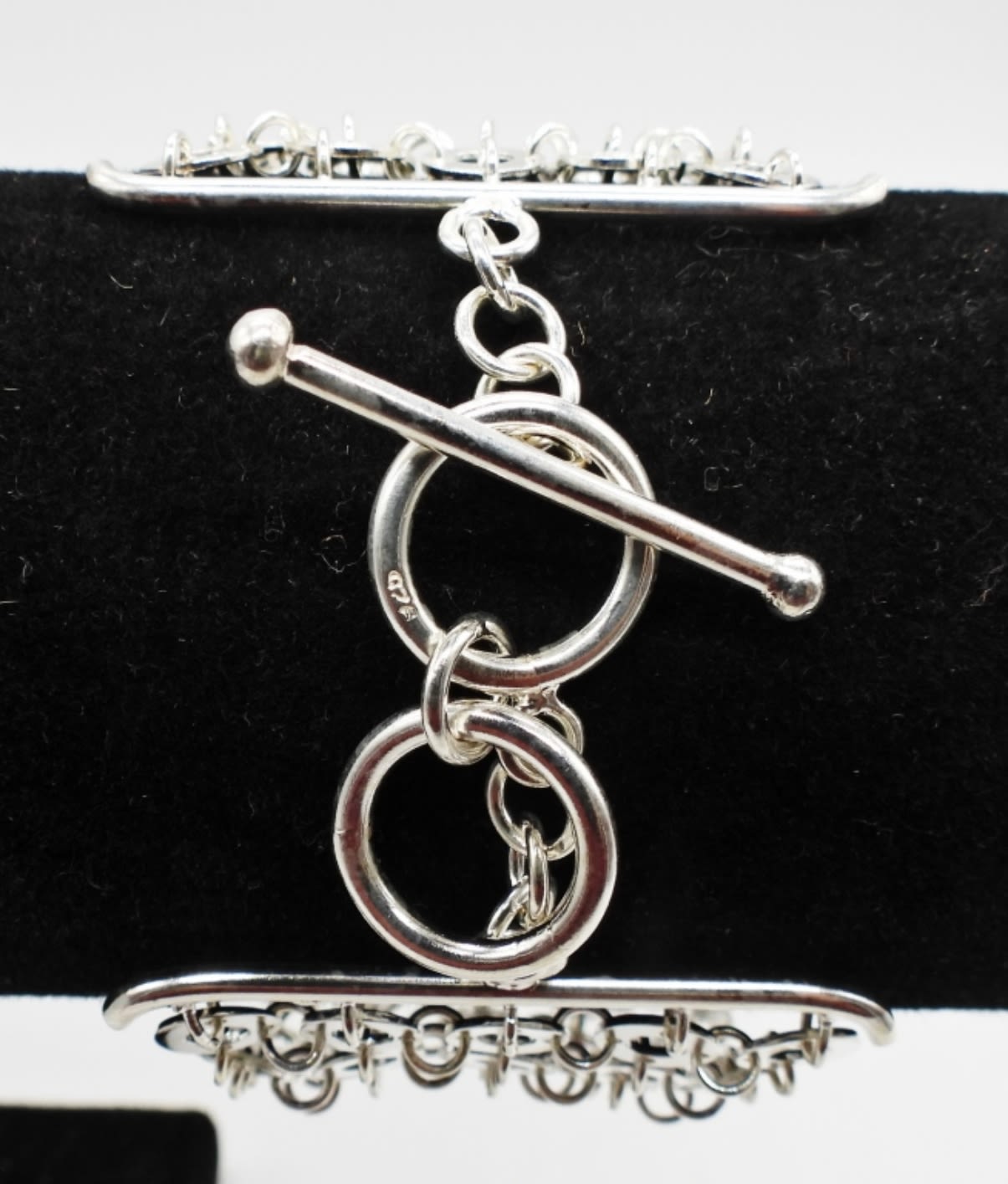 19.4DWT, 8IN LONG 2IN WIDE, STAMPED 924 ON TOGGLE CLASP