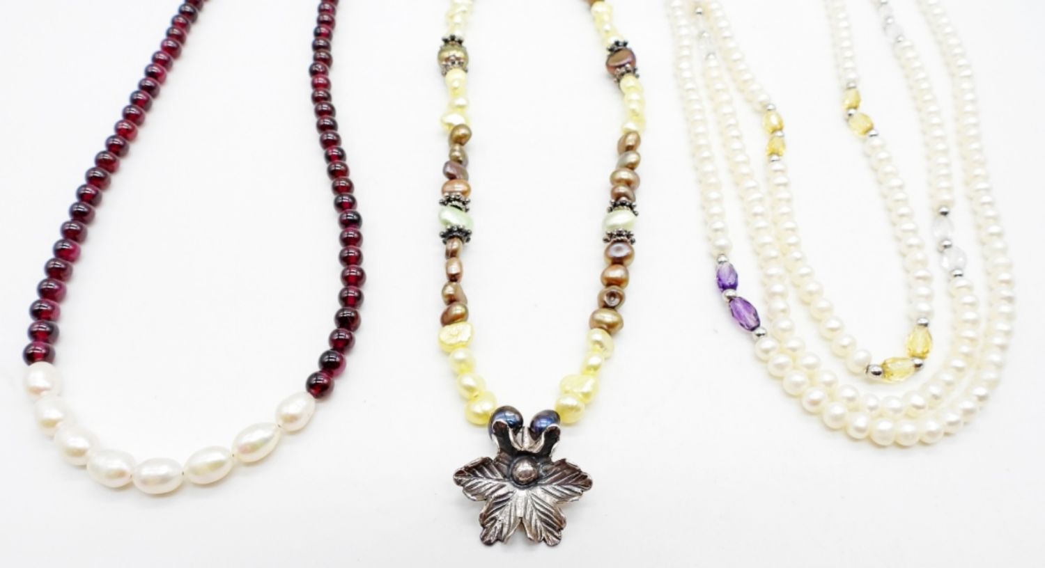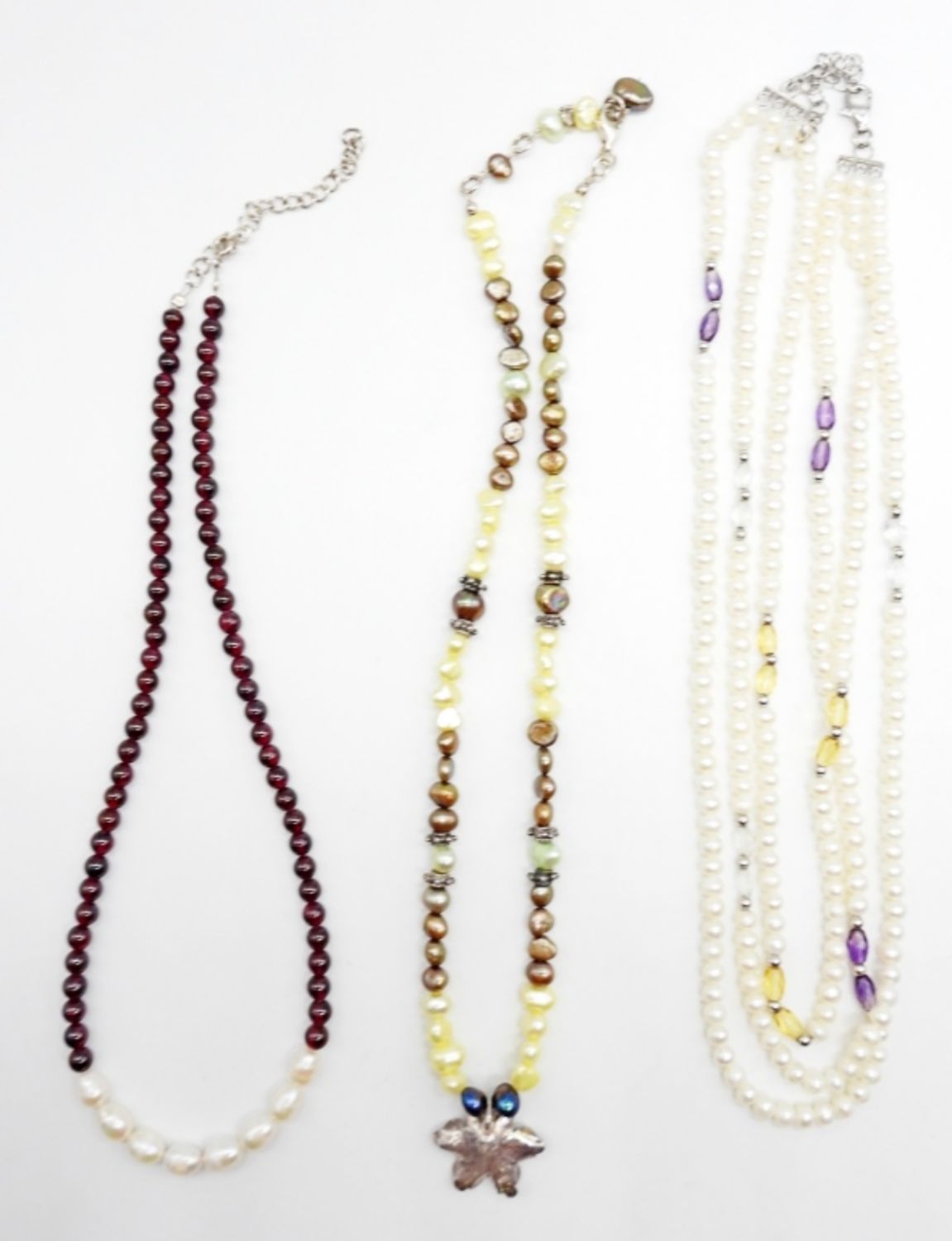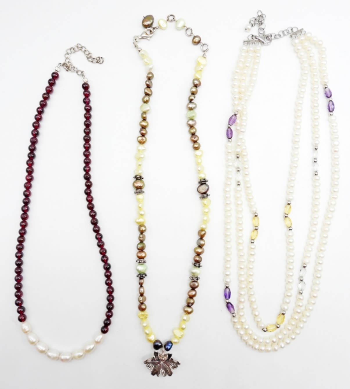 ALL 18IN LONG, ADJUSTABLE, SOME STERLING FOR THE CLASPS AND SOME BEADING, STAMPED 925 ON THE CLASPS