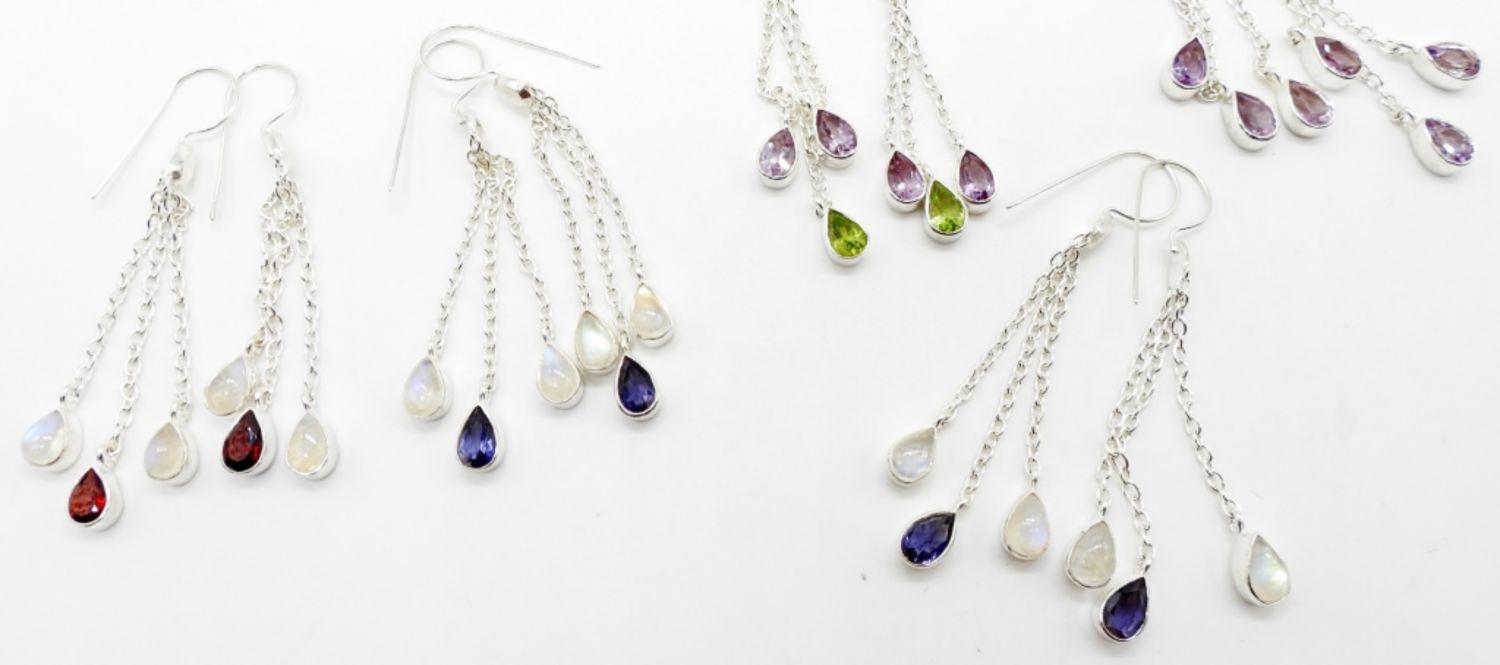 20DWT, ALL STAMPED 925,PURPLE,RED,GREEN,MOONSTONES