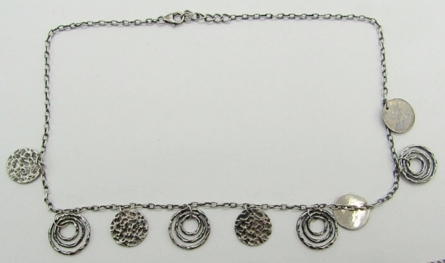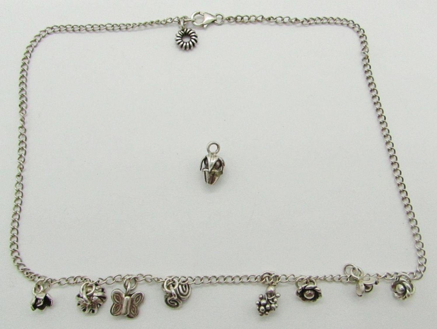 925 Necklace with Spiral & Round Pendants; 925 Necklace with Butterfly, Flowers & Acorn Pendants; 25.8 dwt.