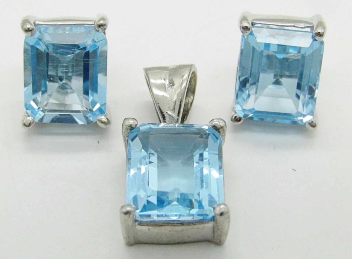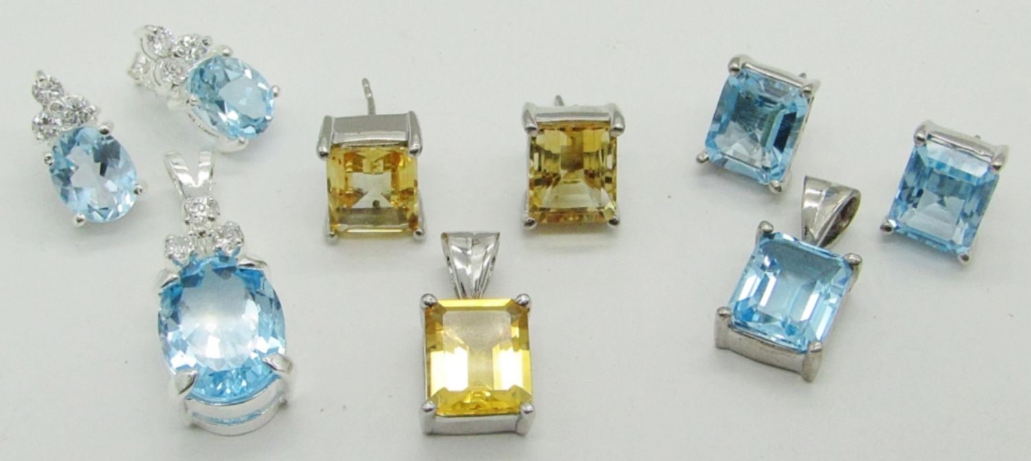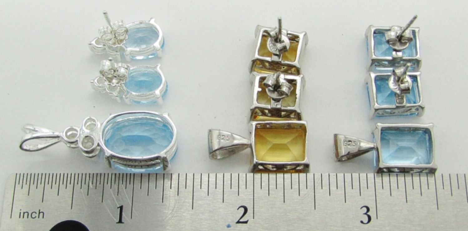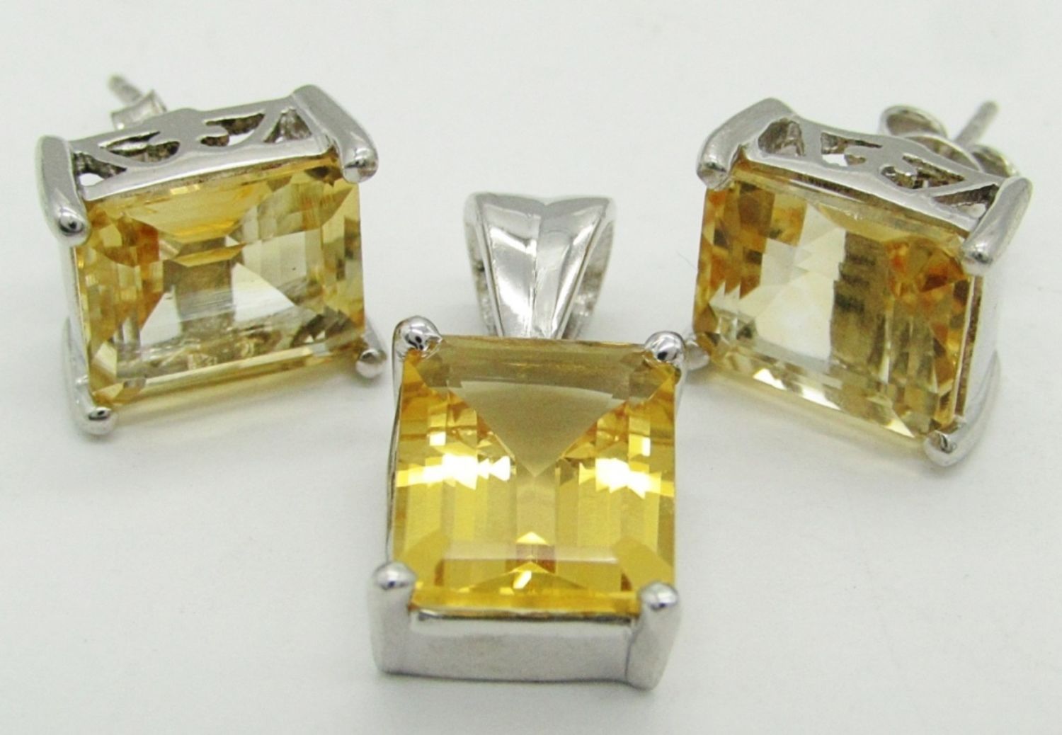 925 Marked Sterling Silver, Turquoise, and Citrine Gemstone Pendants with Matching Pierced Earrings. 18 dwt.