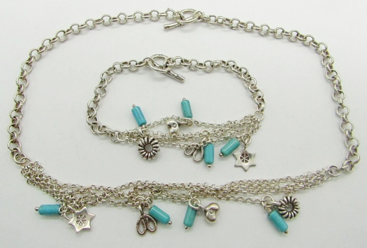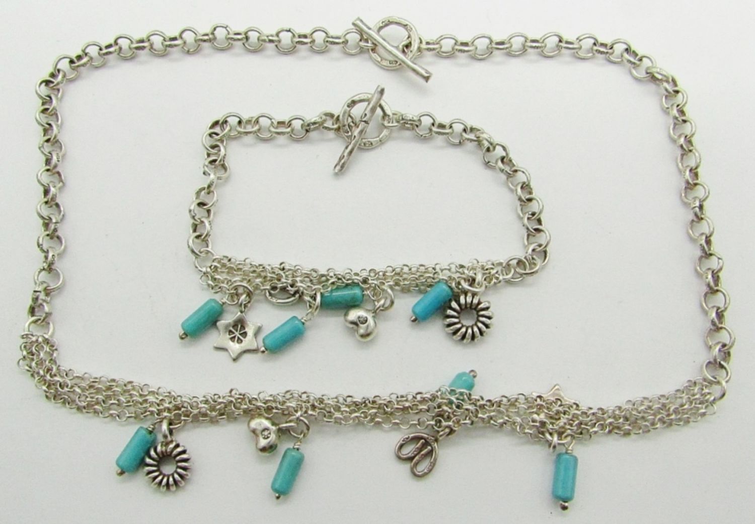 17″ Necklace with Multi Strand Middle; 7.5″ Matching Bracelet with Multi Strand Middle; Both Marked 925; 22.1 dwt.