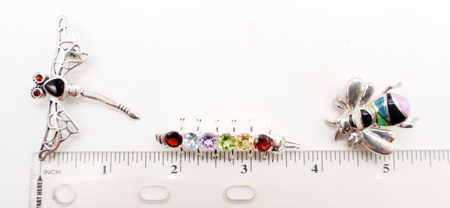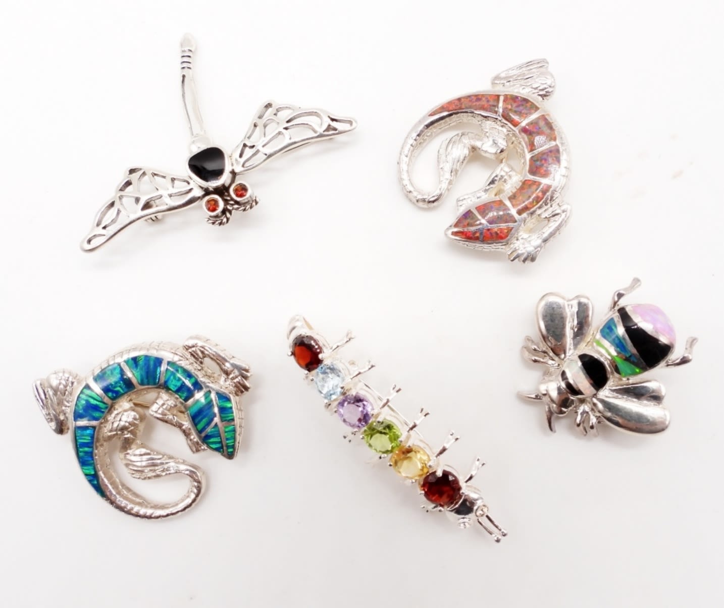 29.4DWT, BETWEEN 1-2IN LONG, DRAGON FLY, A BEE, CATERPILLAR, (2)LIZARDS, ALL STAMPED 925 ON THE BACKS