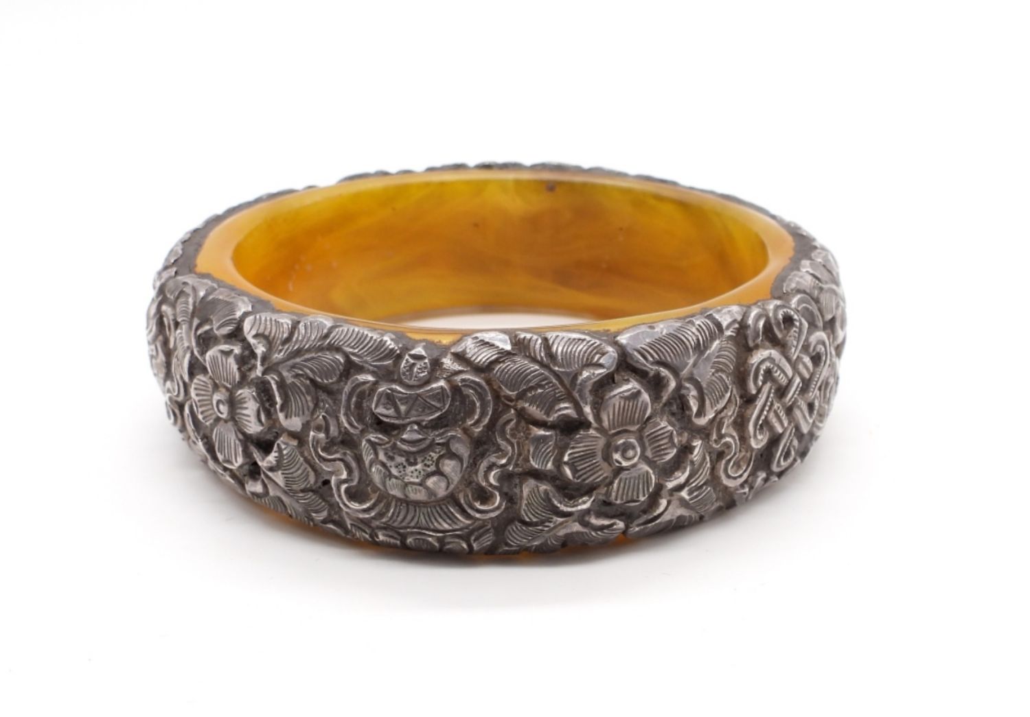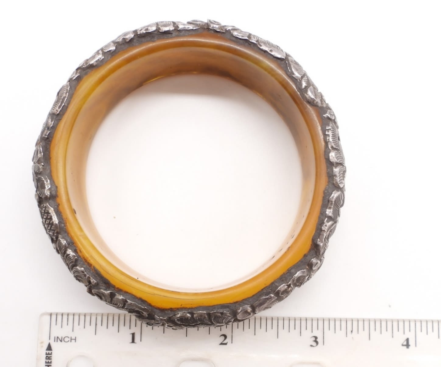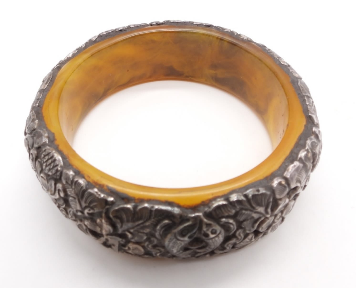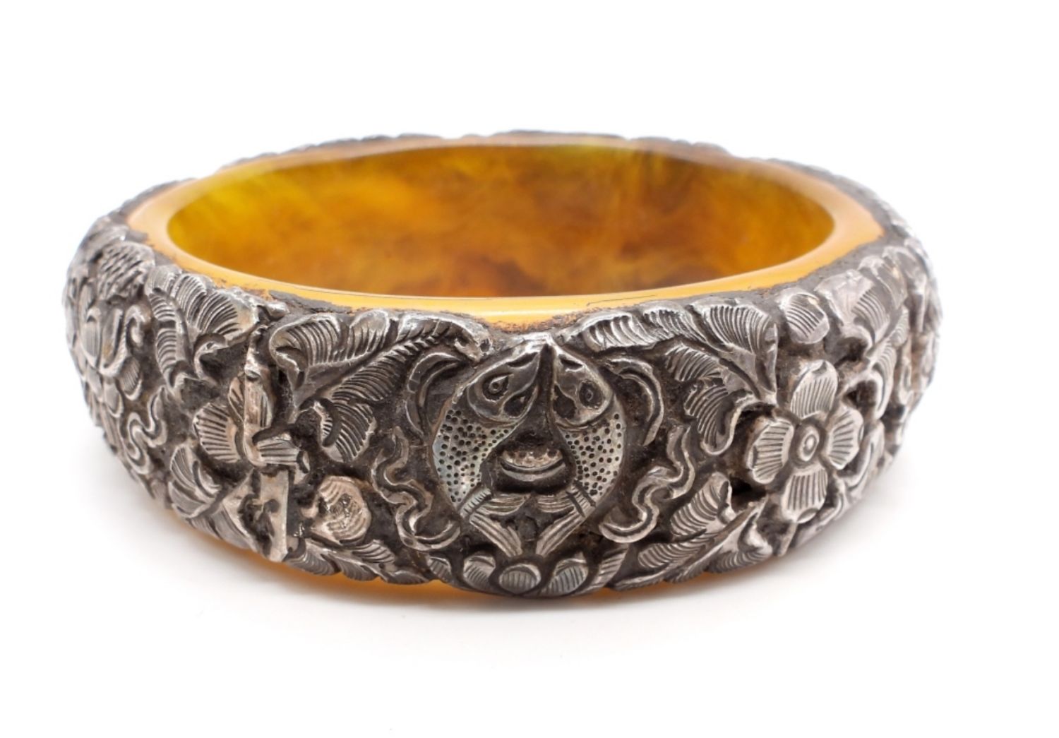 15DWT, 3IN WIDE, UNQUIE PIECE, FLORAL AND KOI FISH DESIGN ALONG THE BANGLE