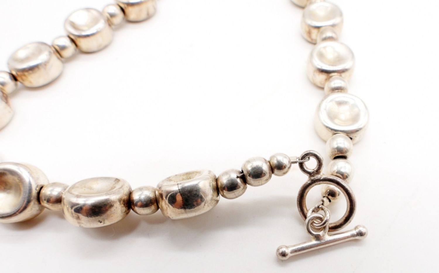 69DWT, 24IN LONG WITH TOGGLE CLASP, NO STAMPING, BRACELET IS 8IN LONG WITH LOBSTER CLASP, STAMPED 925 ON CLASP