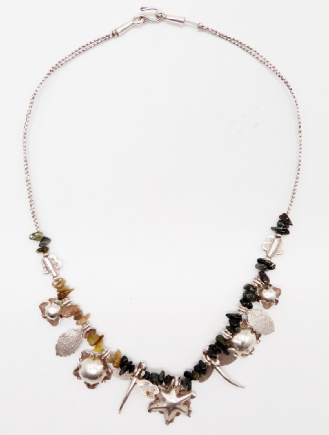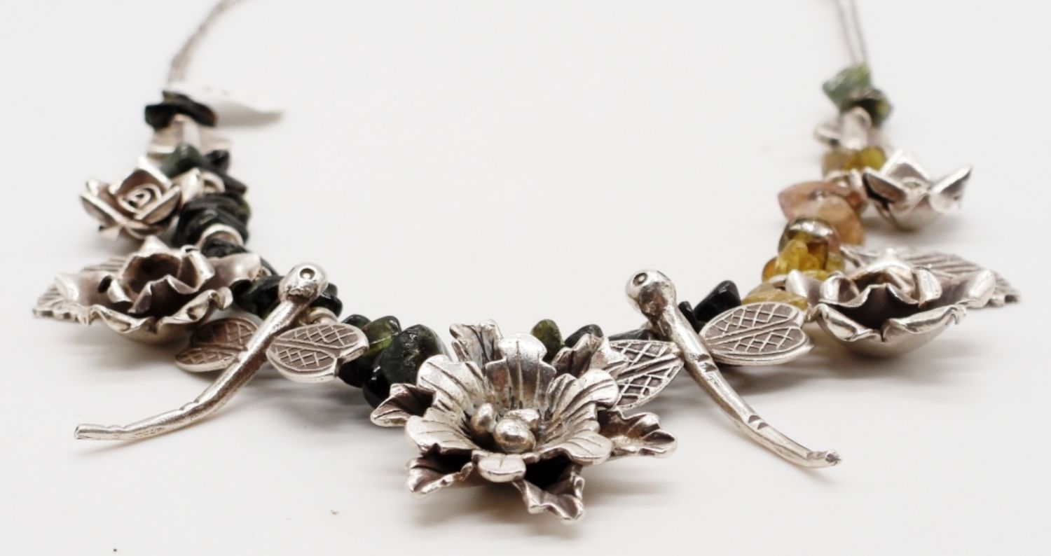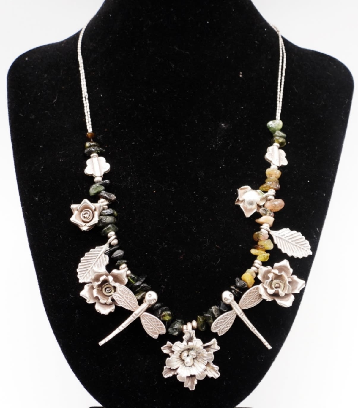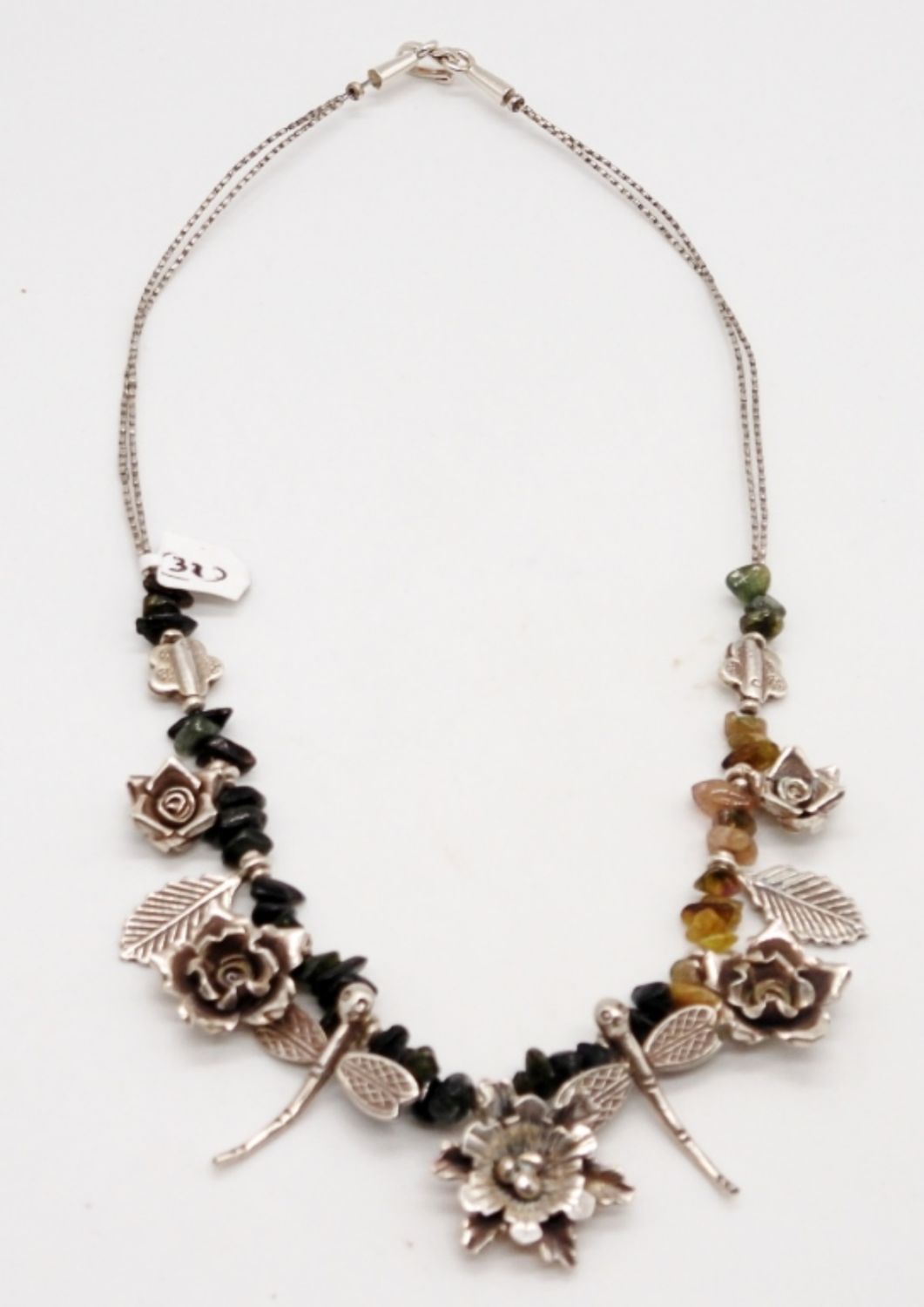 20 DWT STERLING NECKLACE WITH FLOWERS, LEAVES, DRAGONFLIES