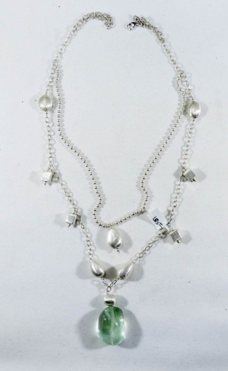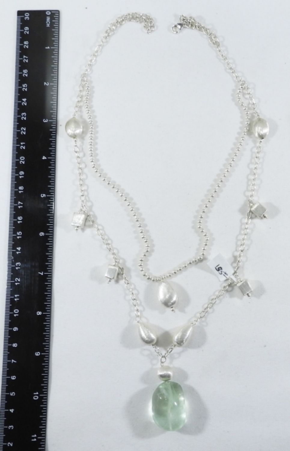 37.6 DWT STERLING LARGE BEADS WITH LARGE LIGHT GREEN QUARTZ STONE