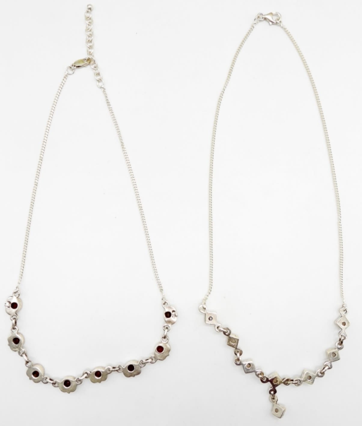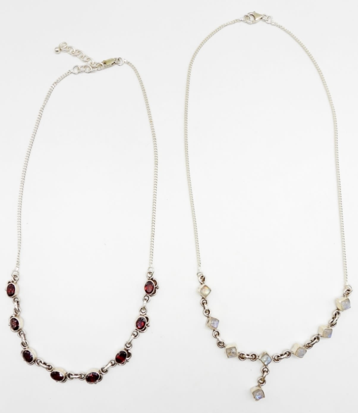 16.9DWT, 18IN LONG FOR BOTH, LOBSTER CLASP, STAMPED 925 ON BOTH, 1- MOONSTONE, 1-GARNET, BOTH ADJUSTABLE