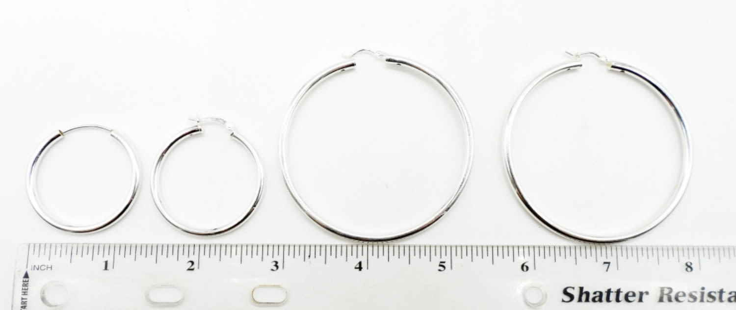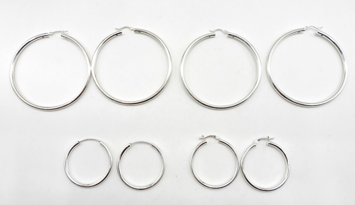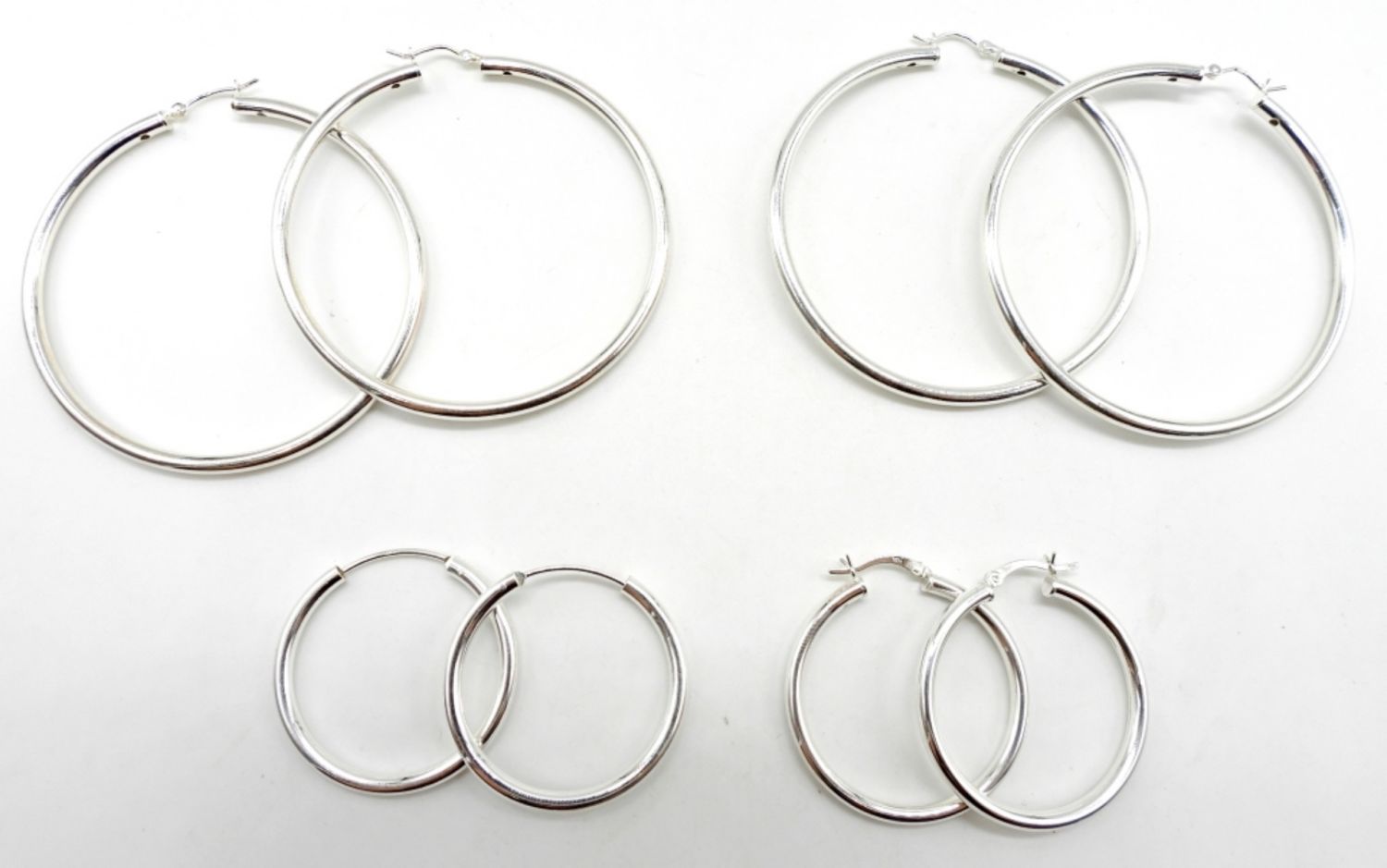 17.8DWT, 2- LARGE HOOPS ABOUT 2 1/2IN WIDE, 2 MEDIUM HOOPS 1 1/2IN WIDE, STAMPED 925