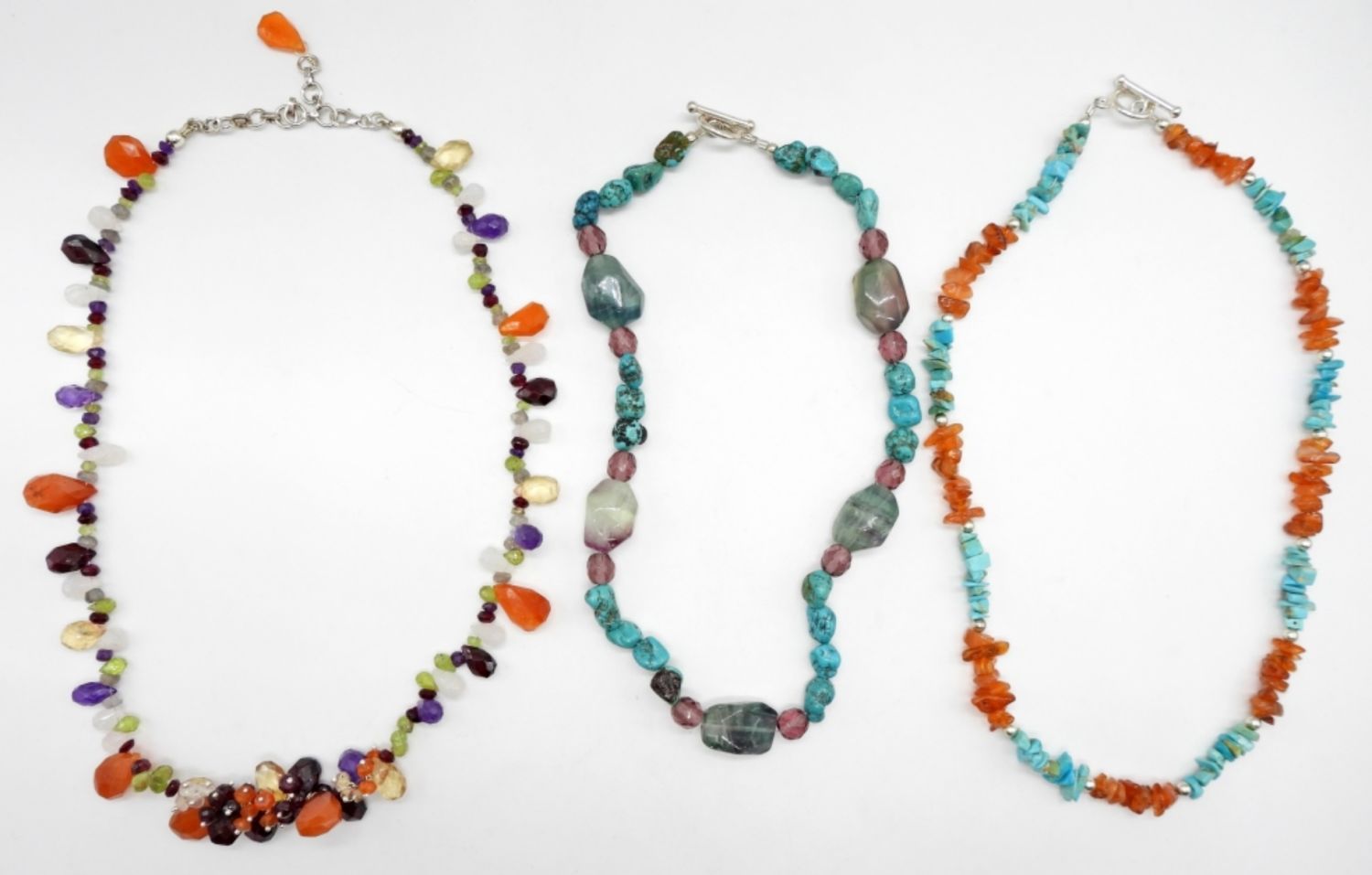 15 1/2IN, 18IN, 20IN LONG, STERLING LOBSTER AND TOGGLE CLASP WITH SOME STERLING BEADING, STAMPED 925 ON THE CLASPS