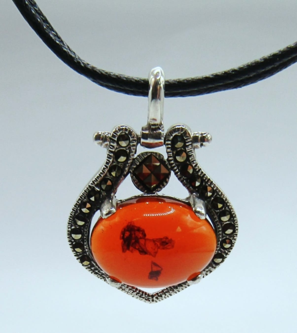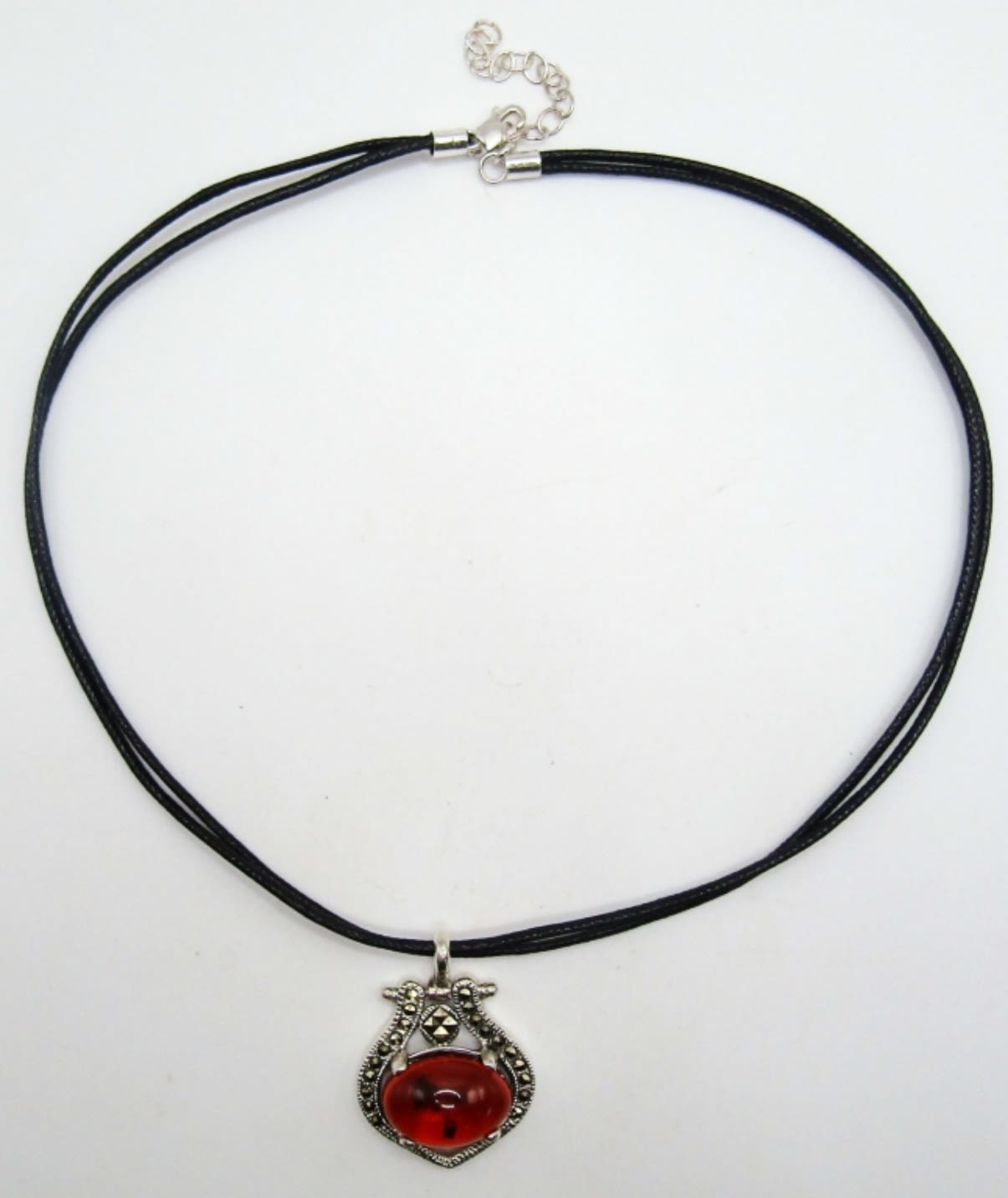 CENTER STONE PLUS BONUS LEATHER NECKLACE/CHAIN WITH 925 CLASP